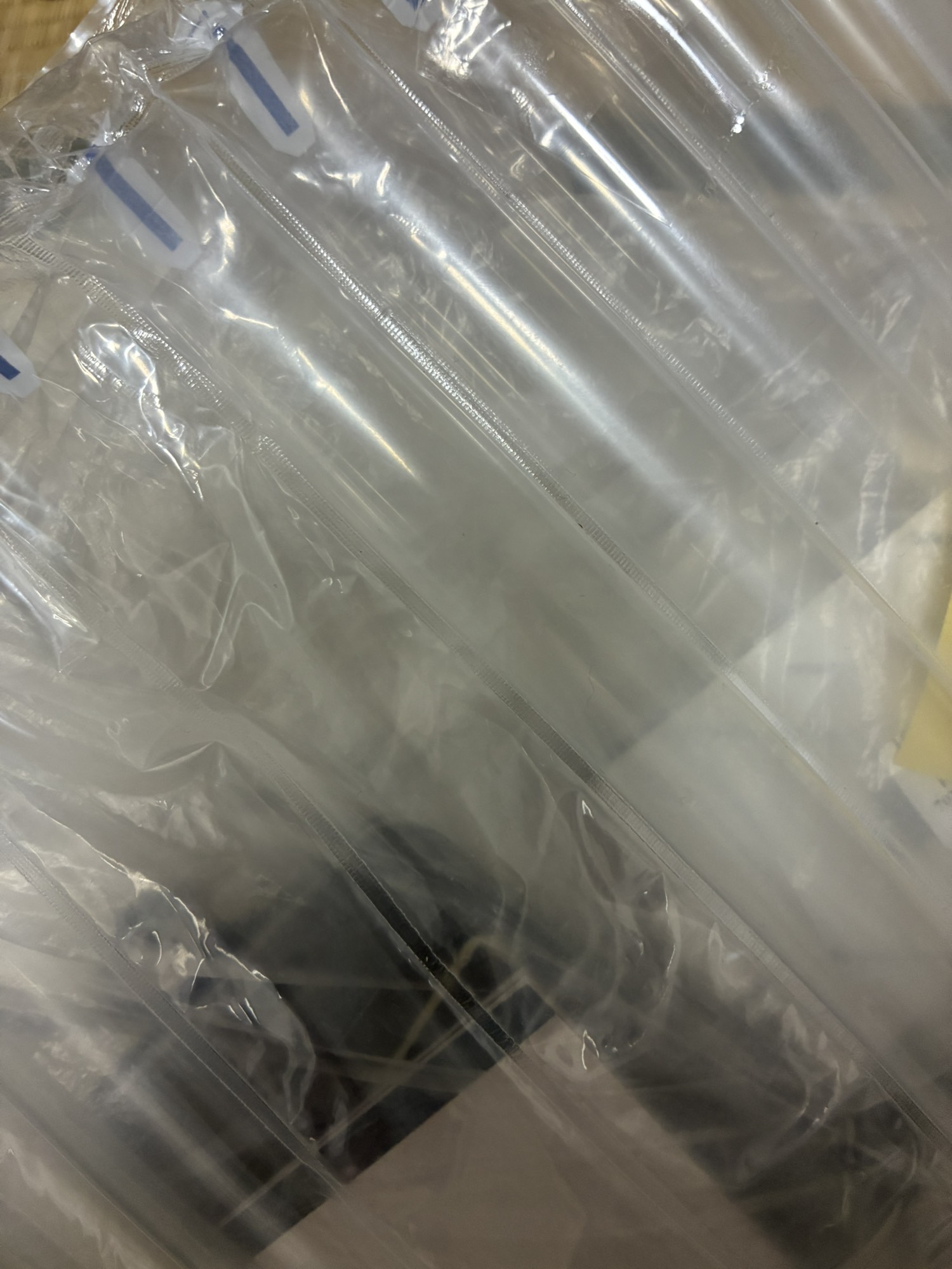 アクリルを保護するために、二層シールが付いています。シールがプラスチックのため、少しキズと匂いがあります。使用する前に、必ず保護シールを剥がして、風通しの良い場所で3分間ほど置いてください。