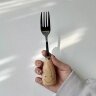 ナイフフォークスプーン|ステンレス製・かわいい笑顔の木柄・日常、フルーツ、ケーキ、西洋料理用に最適