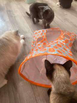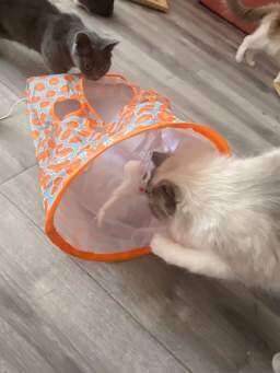 置くとすぐに猫たちが集まってきて、とても楽しそうに遊んでいます。とても良い商品で、おすすめです。