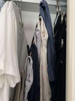 たくさんのズボンを掛けることができ、スペースを節約できます。品質と仕上げは非常に細かく、シンプルで素敵です。