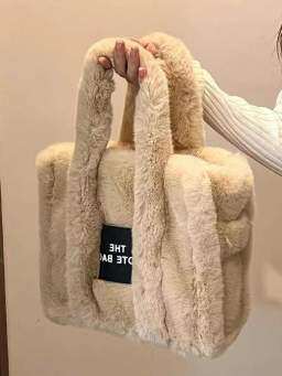 ショッパーバッグ|エレガント・女性・冬・柔らかい・スタープリントハンドバッグ・フェイクファーハンドバッグ・ふわふわ・トートバッグ