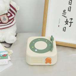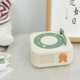 とても可愛いブルートゥーススピーカーです。リビングルームに置いても問題ありません。音質も素晴らしく、クリアです。使いやすく、ブルートゥース接続も安定しています。レコードプレーヤーのデザインもとても可愛いです。かなり高級なレトロなブルートゥーススピーカーで、特に気に入っています。