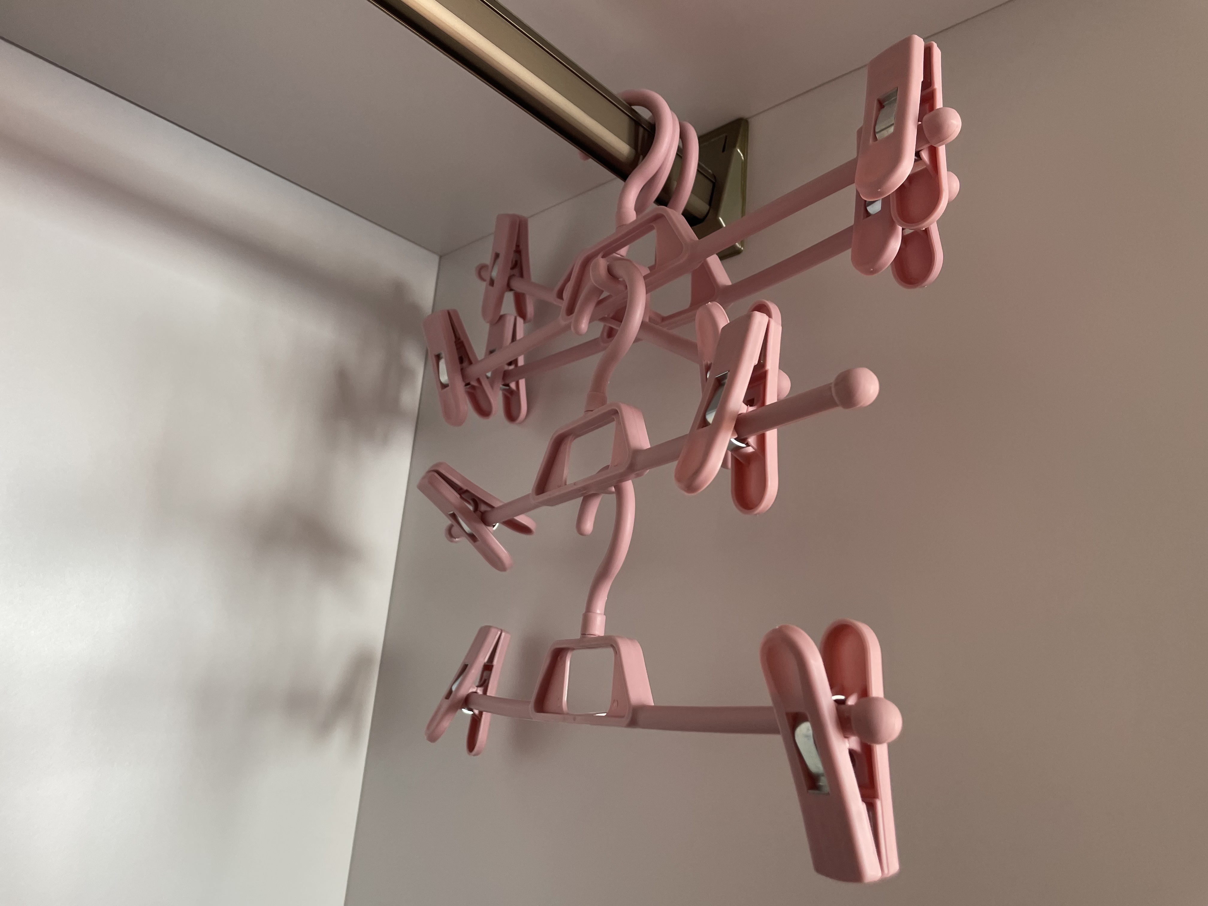 商品の品質は非常に驚くべきもので、耐荷重能力が非常に高く、非常に柔軟で、自由に回転させることができ、クリップの位置を移動することができ、フックのデザインは非常に合理的で、クローゼットで重ねることができ、色合いも非常に高級です。