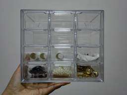 手作品を収納するのにちょうどいいサイズで、もう失くす心配はありません。透明なグリッドで、取り出しも便利で、デスクに置いても場所を取りません。上面は平らで、物を置くこともできます。心の底から満足しています。
