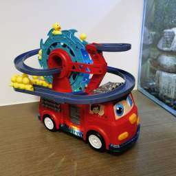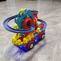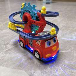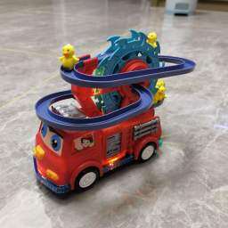 Sparkling電動消防軌道車おもちゃ|ライト・音楽・アヒル・滑り台・回転メリーゴーランド・オムニホイール