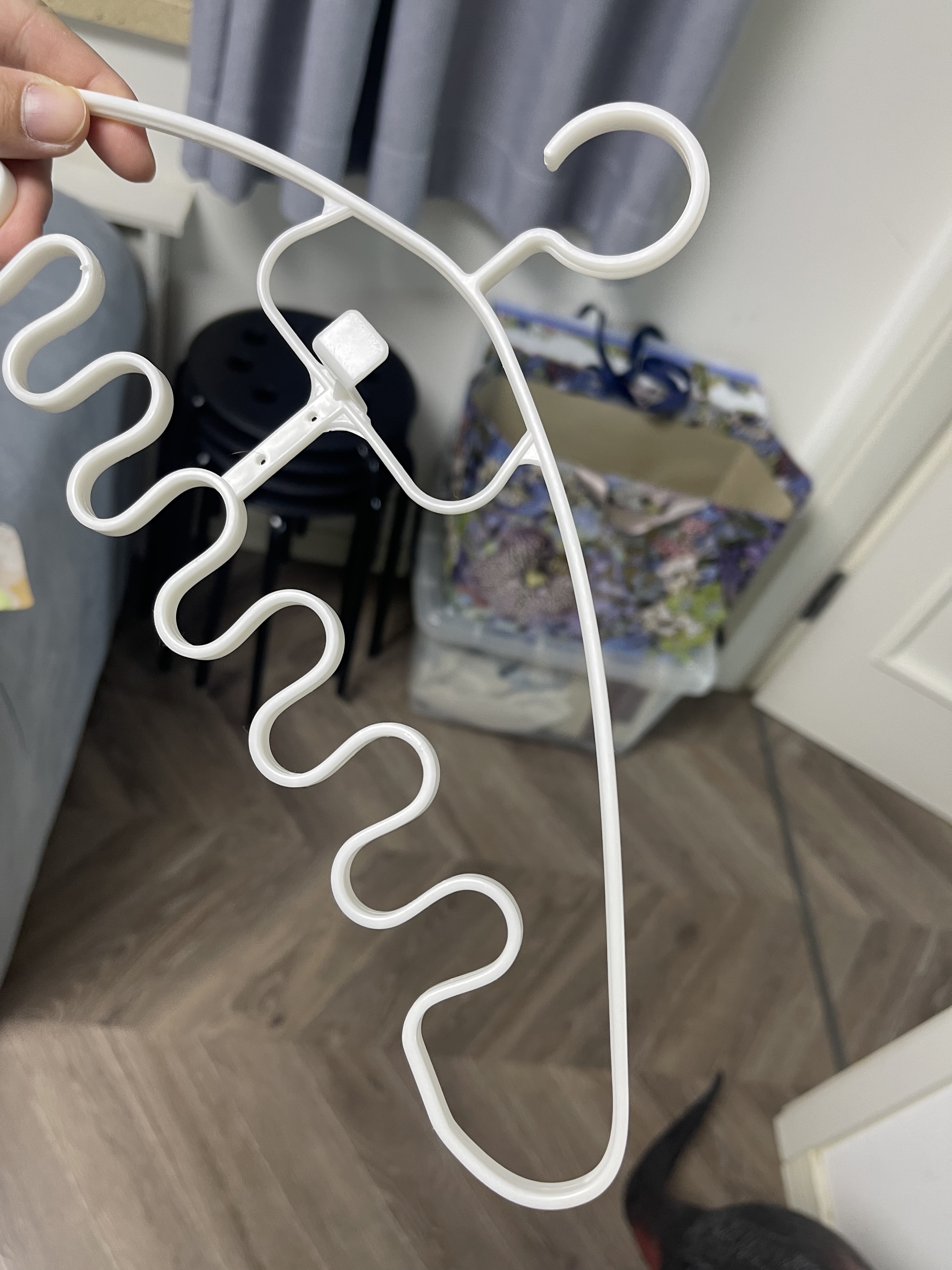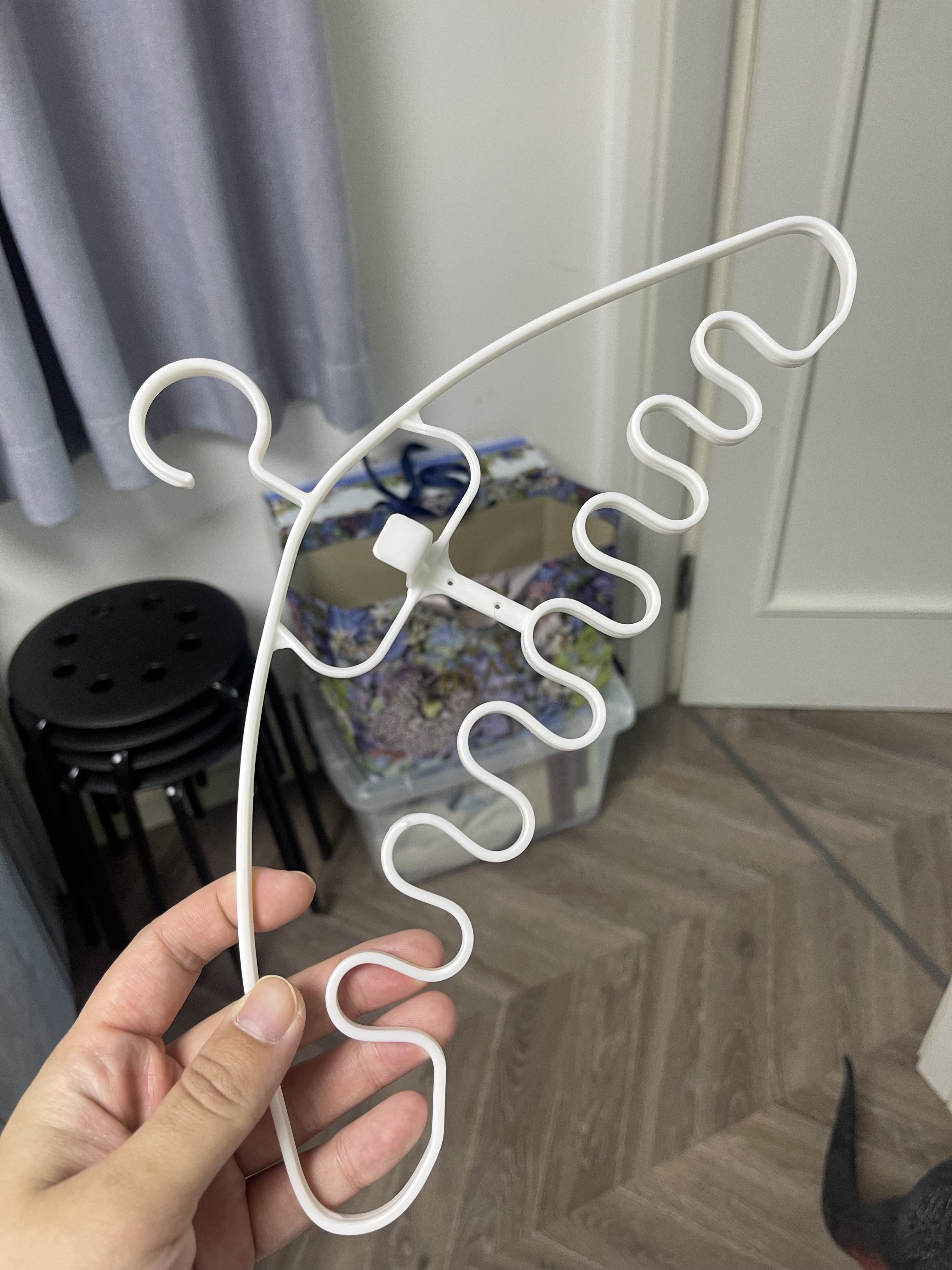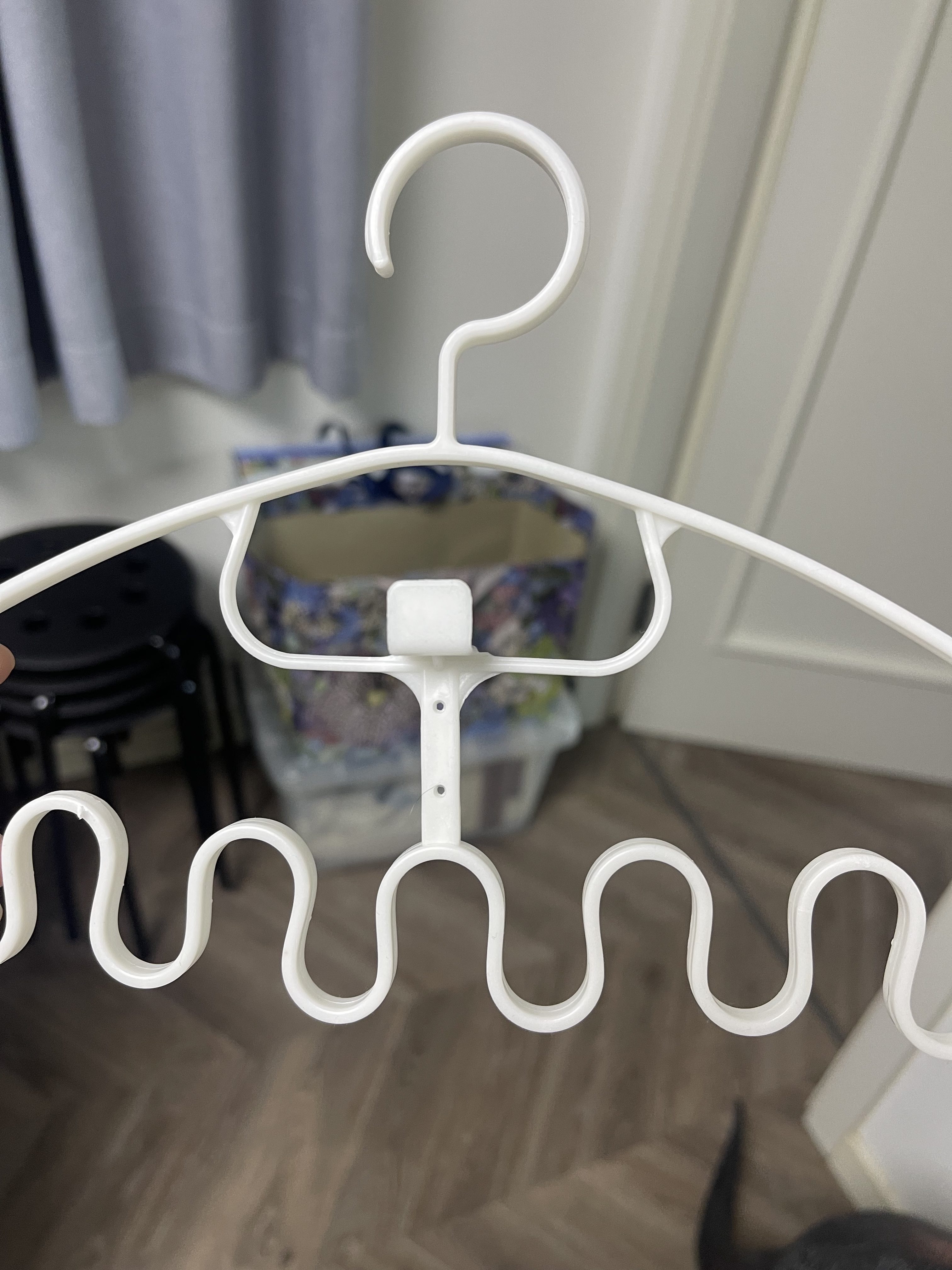 衣架は完璧で、小さくても実用的です。ストラップなどをかけるのにとても便利です。素材は粗くないですが、しなやかでたくさんかけても簡単に折れないと思います。