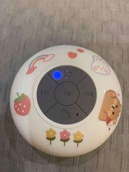 結構吸盤がギュウギュウ!USB充電器付きだけど、専用のだから充電器なくしたらアウトー!! 充電MAXでブルーに点灯💙シールも付いてたけど貼らない笑 あとは浴室で防水がちゃんと機能するのか、、
