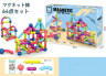 はめ込むブロックと違い、つなげる位置が多少ずれてもブロック同士が引きつけ合うので、目と手の協応が発達途上でも遊びやすくなっています。