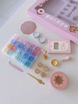 内容:粒状ワックス×24格+カラーペン×2+キャンドル×4個+封筒×10+メルトポット+スプーン+ハンドル+スタンプ