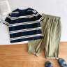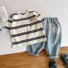 Tシャツ|谷風2024夏新作・子供服・韓国風・刺繍入りアルファベットTシャツ・男女児・ストライプ柄・半袖