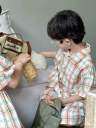 子供服|兄妹コーデ・子供用・セットアップ・2024夏・男女兼用・韓国風・カラフルチェック柄・ワンピース・カジュアル・半袖・ショートパンツ・2点セット