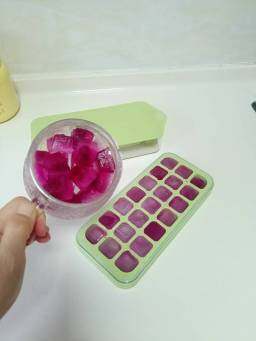 すぐに使える☀️、アイスメーカーに異臭がない🥰、冷蔵庫に入れても場所を取らない、凍らせた後、押すだけで出てくる🌻、かなり便利です。👍🏻