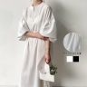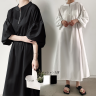 Yippeeワンピース|ランタンスリーブ・夏新作・韓国風・ゆったり・前ファスナー・ロング丈・ショートスリーブ・服
