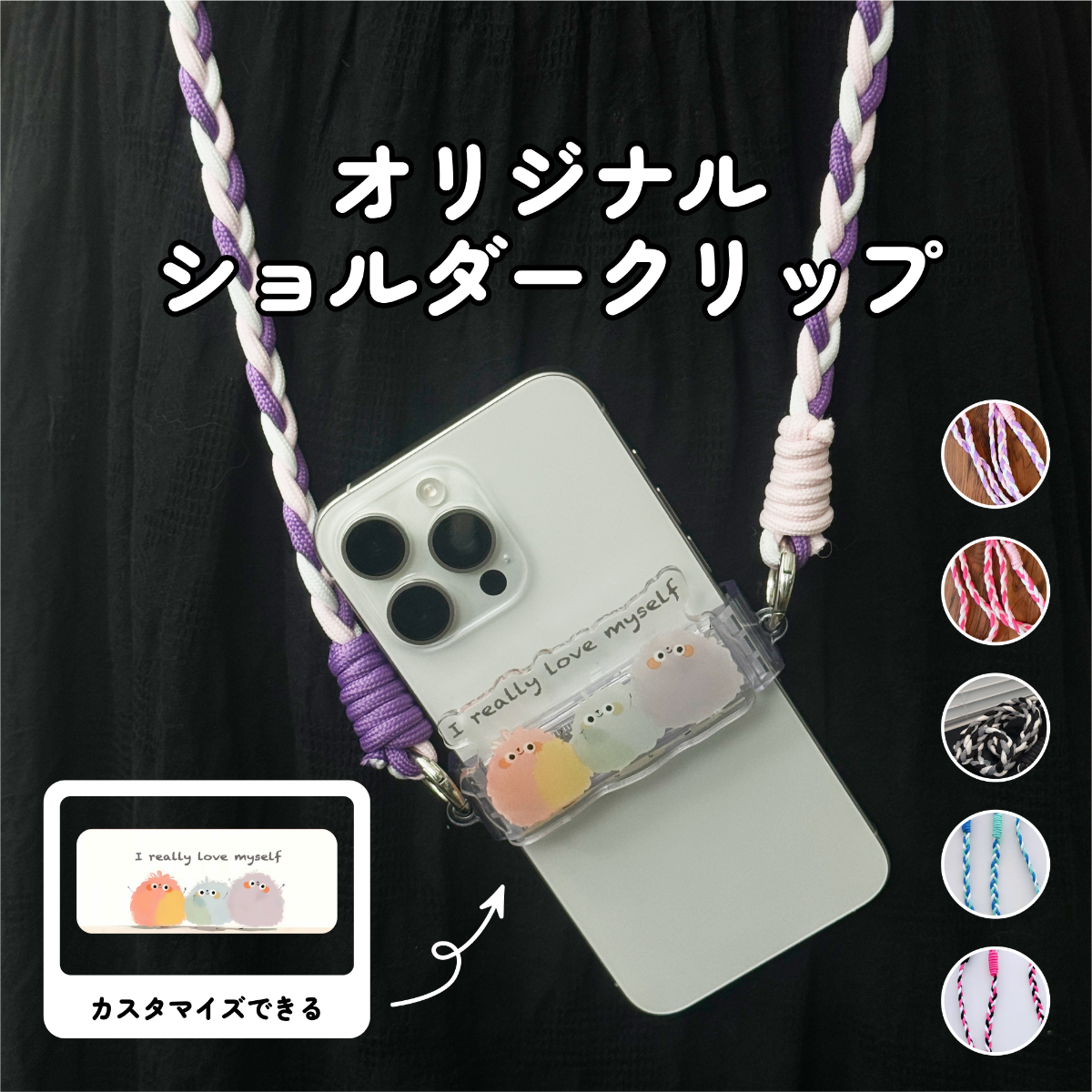 WOWオリジナルオリジナルショルダークリップ|ストラップ・横向きの画像入れお勧め・7.5x4cm印刷範囲・着脱簡単・おしゃれ・アクリル・スマホケース・落下防止