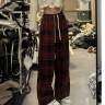 真っ赤と言うよりはオレンジよりの赤かな?思ってたよりダボってた。ウエストのゴムは少々キツめ。薄手の割には生地がしっかりしてる!!