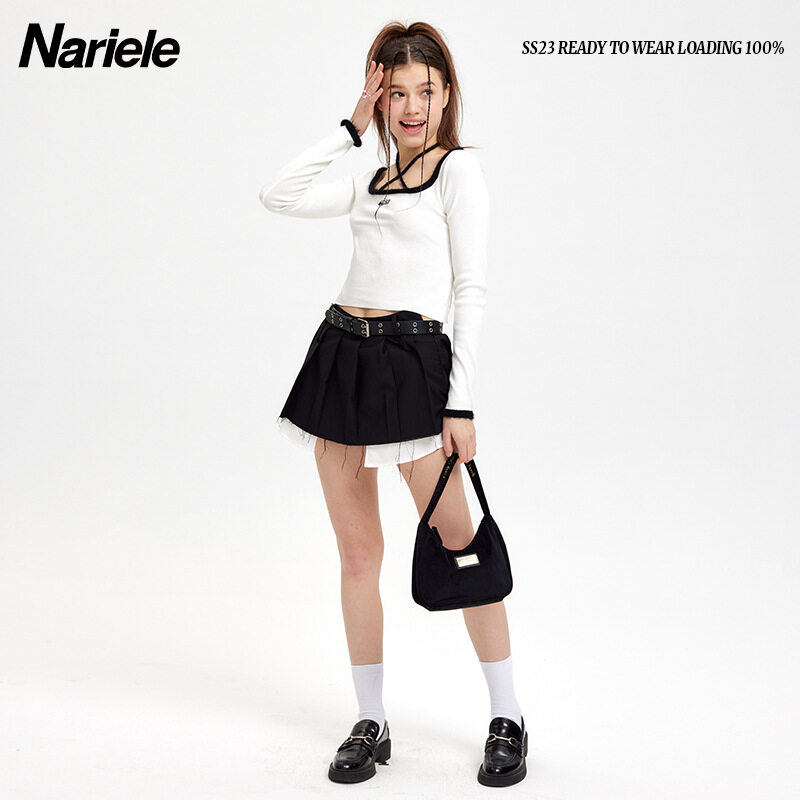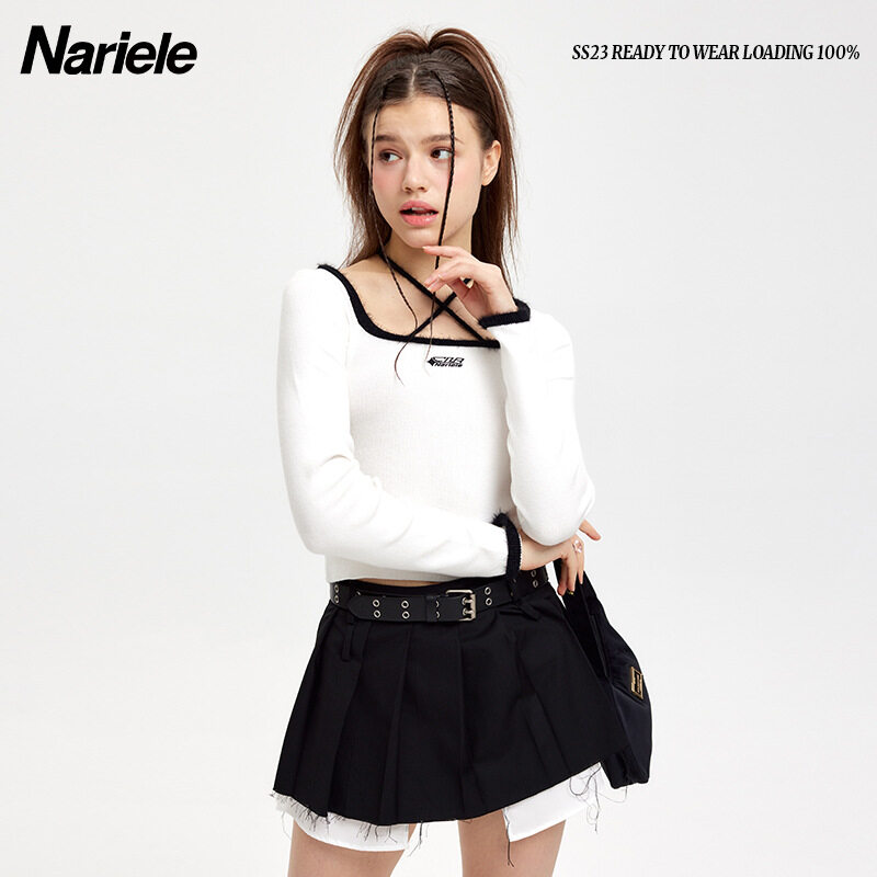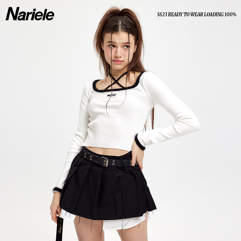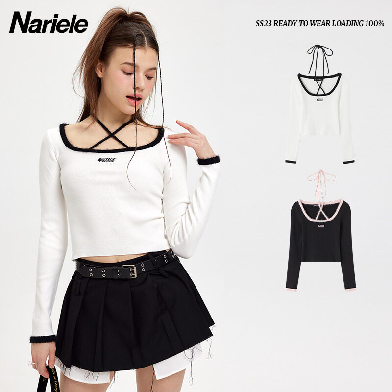 Yonderニットトップス|ロングスリーブ・ホルターネック・秋冬・ショート丈・スリム・リボン