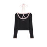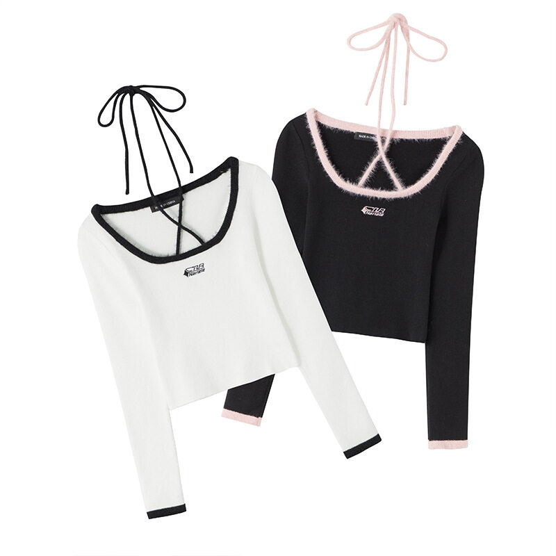 ニットトップス|ロングスリーブ・ホルターネック・秋冬・ショート丈・スリム・リボン|undefined