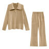 on% closetセットアップ|ファッション・秋冬・ニット・襟付き・ワイドパンツ・ハイウエスト・ストレート・カジュアル