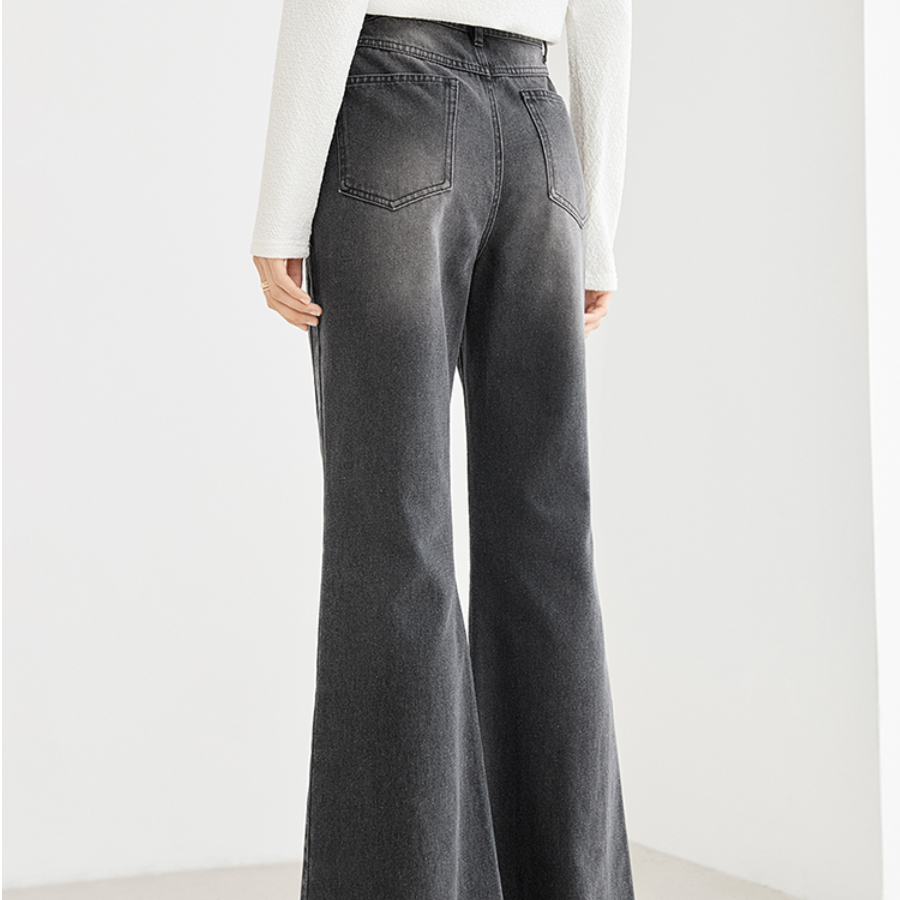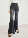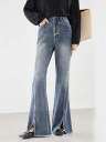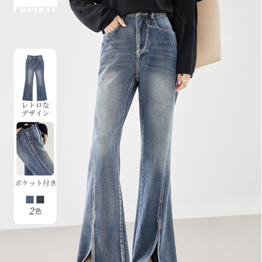 DUIBAIパンツ|ハイウエスト・スリット・フレアパンツ・デニム・2024年秋新作・スリム効果・ロングレングス・美脚効果