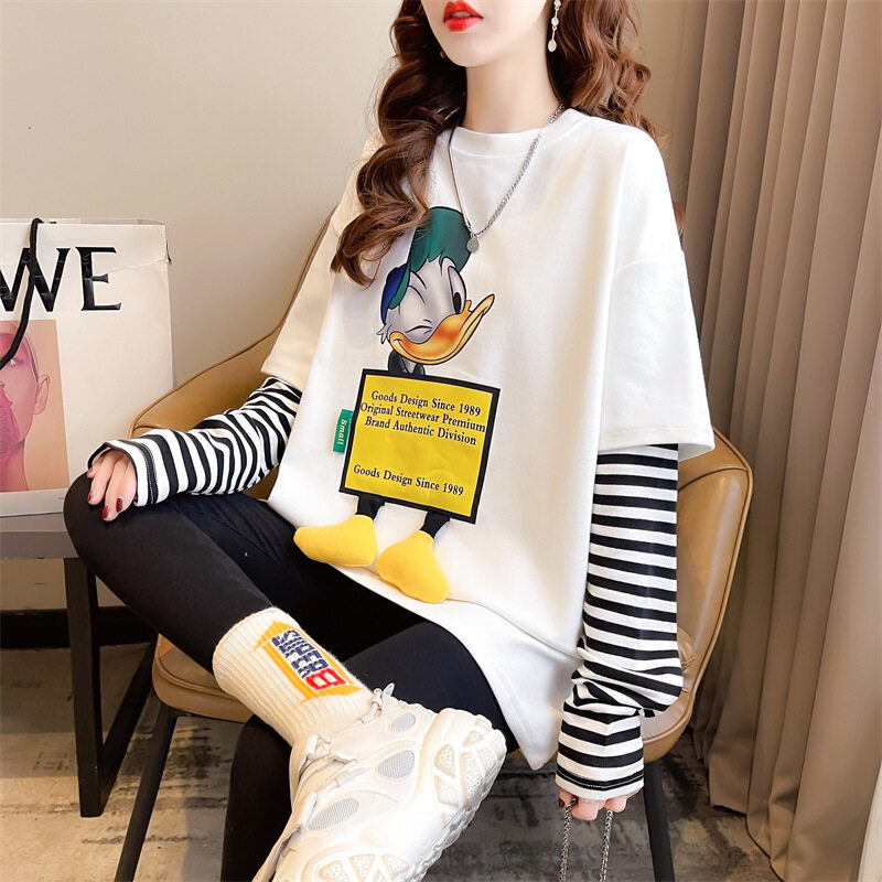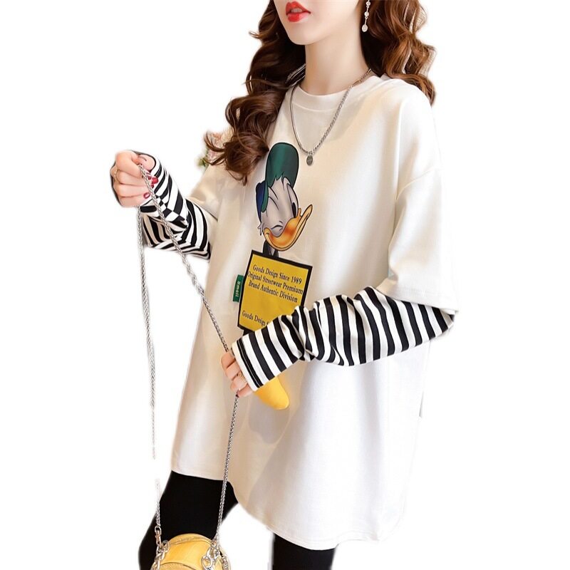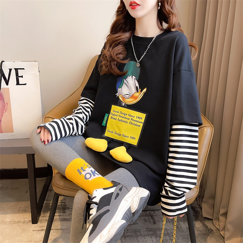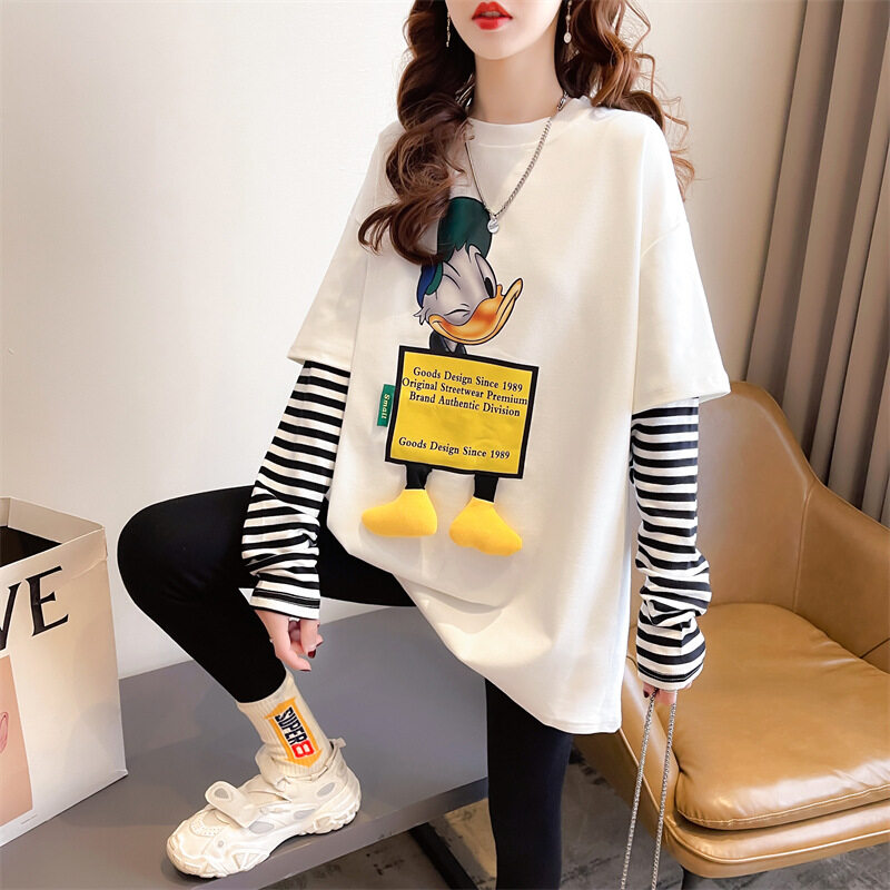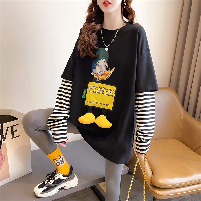 吉トップス|ファッション・ルーズ・中長・デザイン・フェイクレイヤード・長袖・秋冬