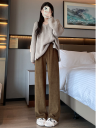 吉ロングパンツ|秋冬・ハイウエスト・ワイドパンツ・ルーズ・厚手