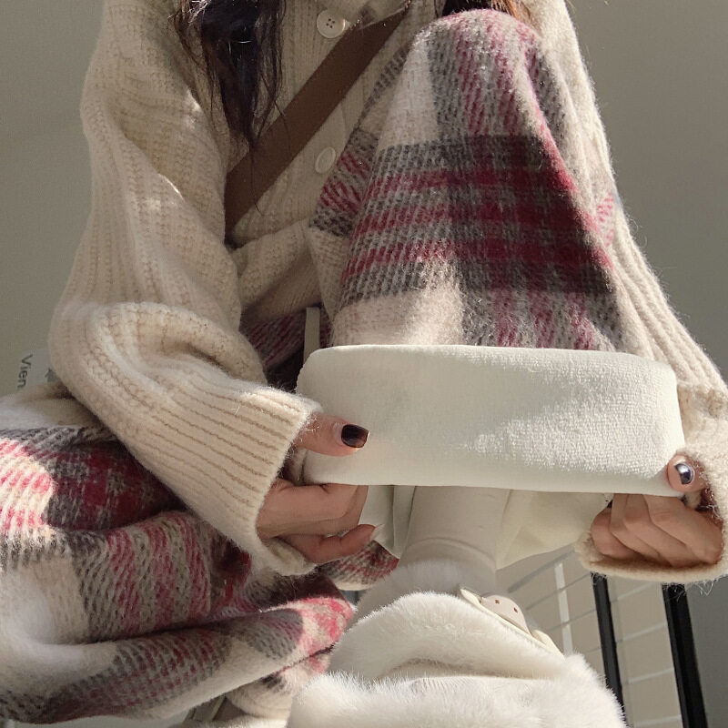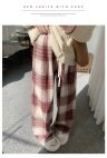 パンツ|レトロ・ウール混紡・チェック柄・スリムフィット・ロング丈・カジュアル・リラックス・ストレート・ドレープ感・裏起毛・ニット・ワイドレッグ|undefined