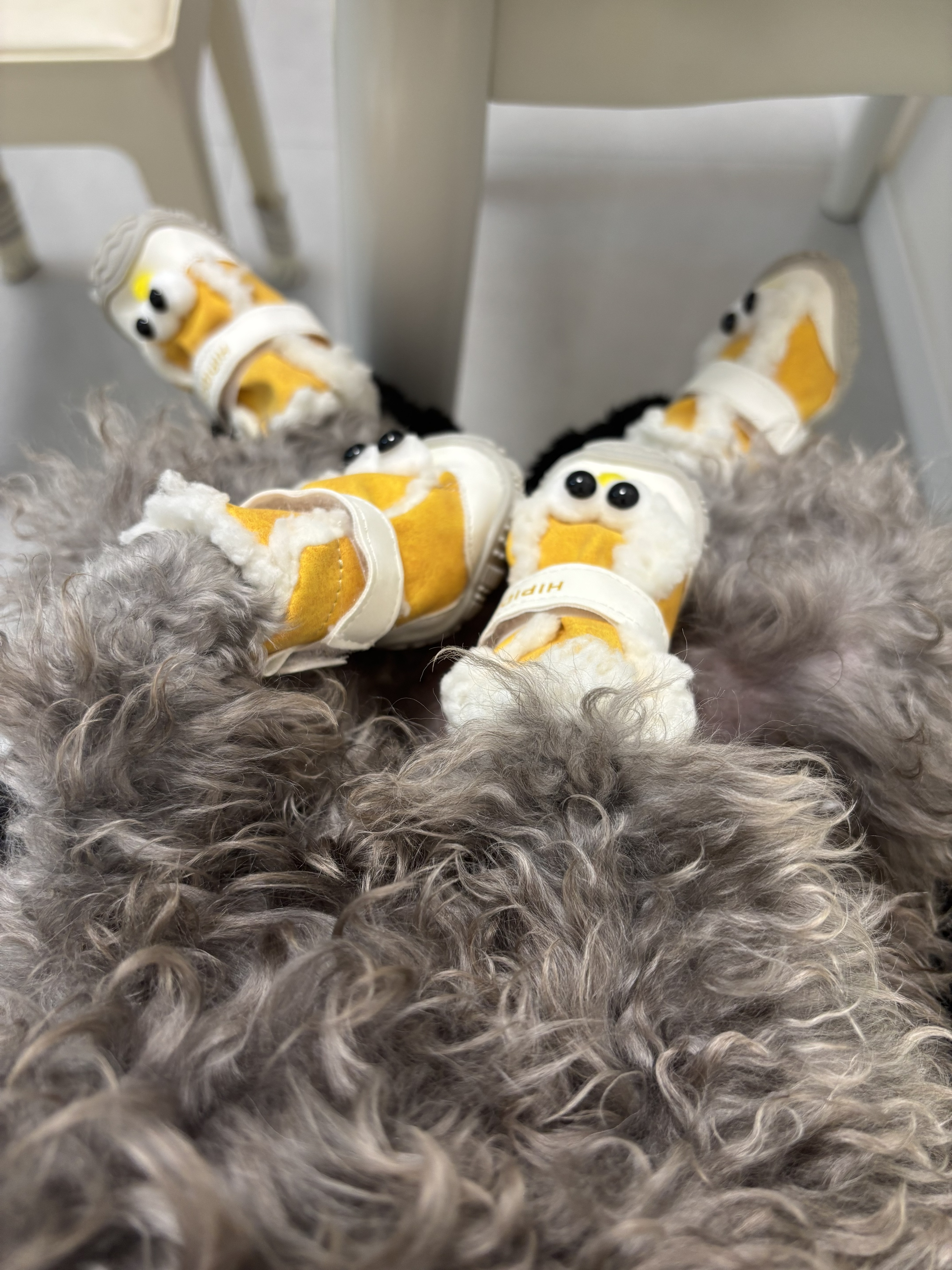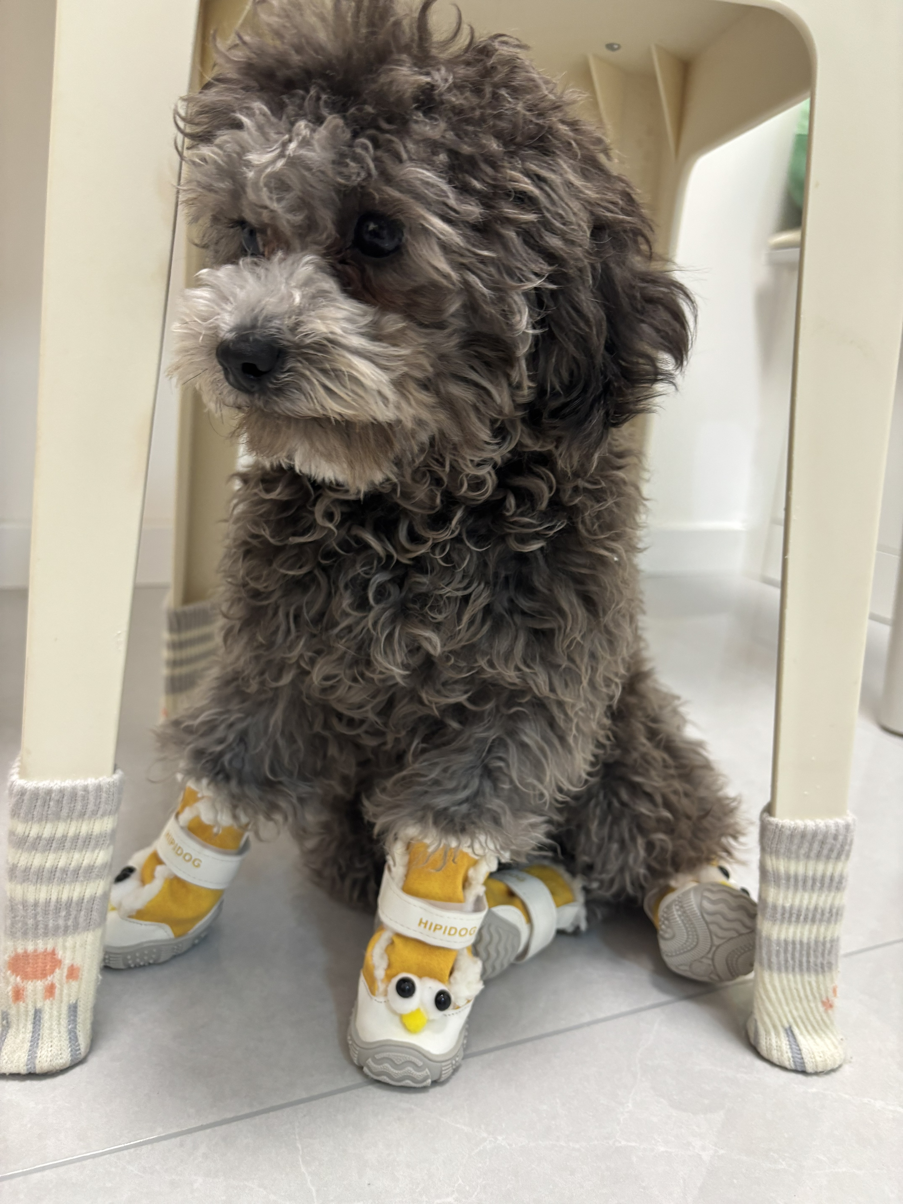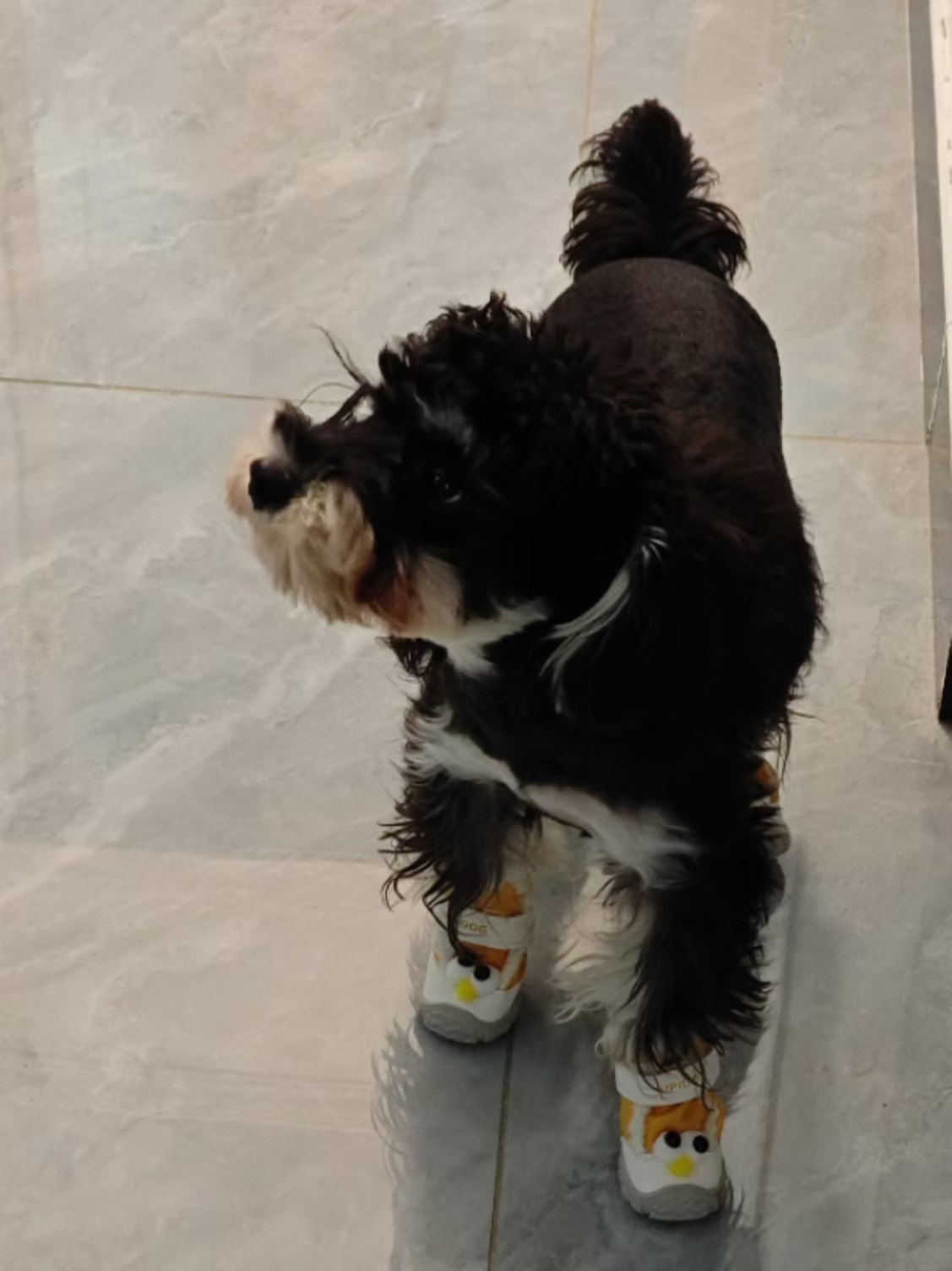 とても可愛くて、靴の中はフリースが入っていて特に暖かいです。犬は冬に外に出ても寒くないので、雪が降るのを待って雪遊びができます。