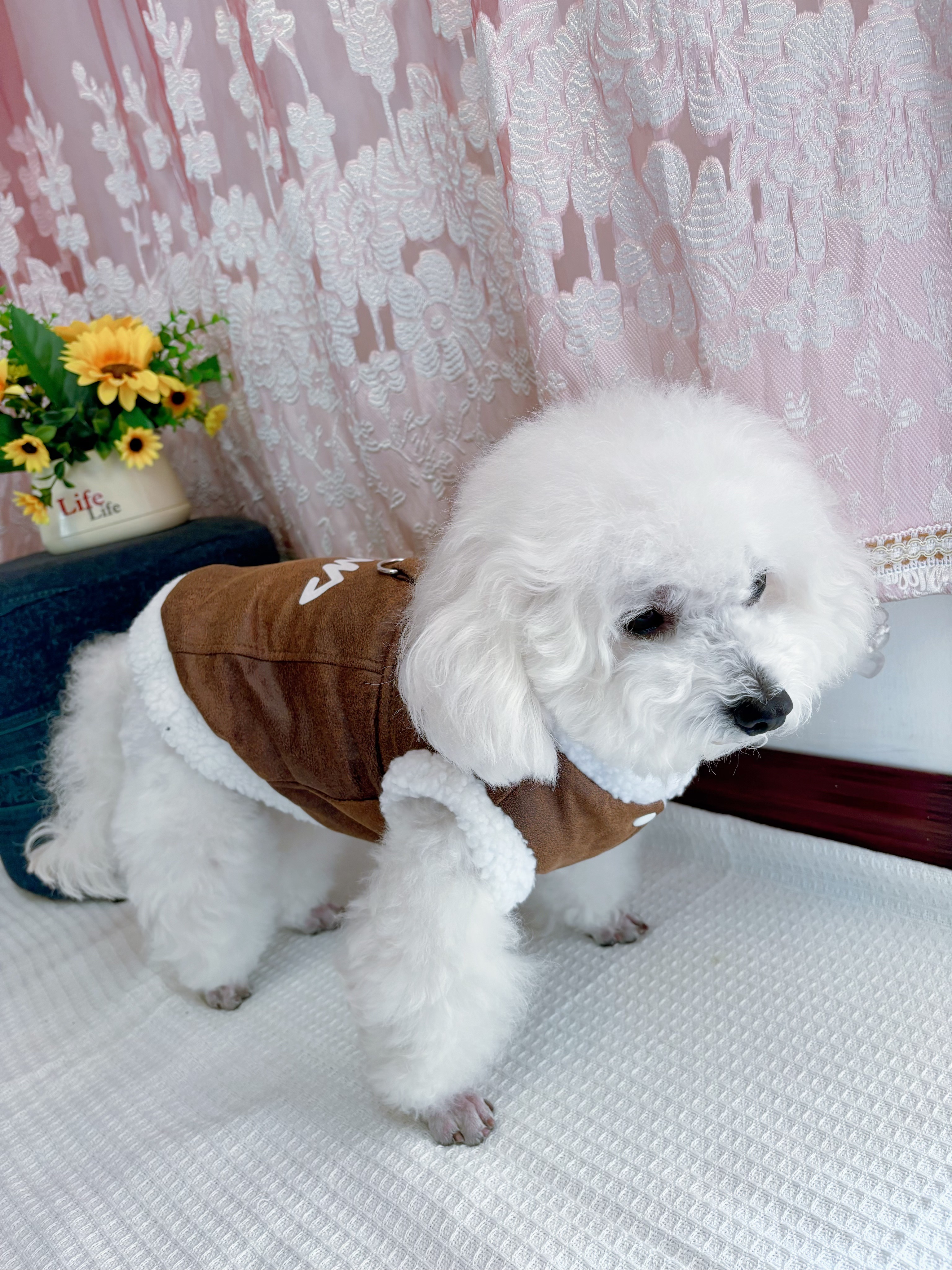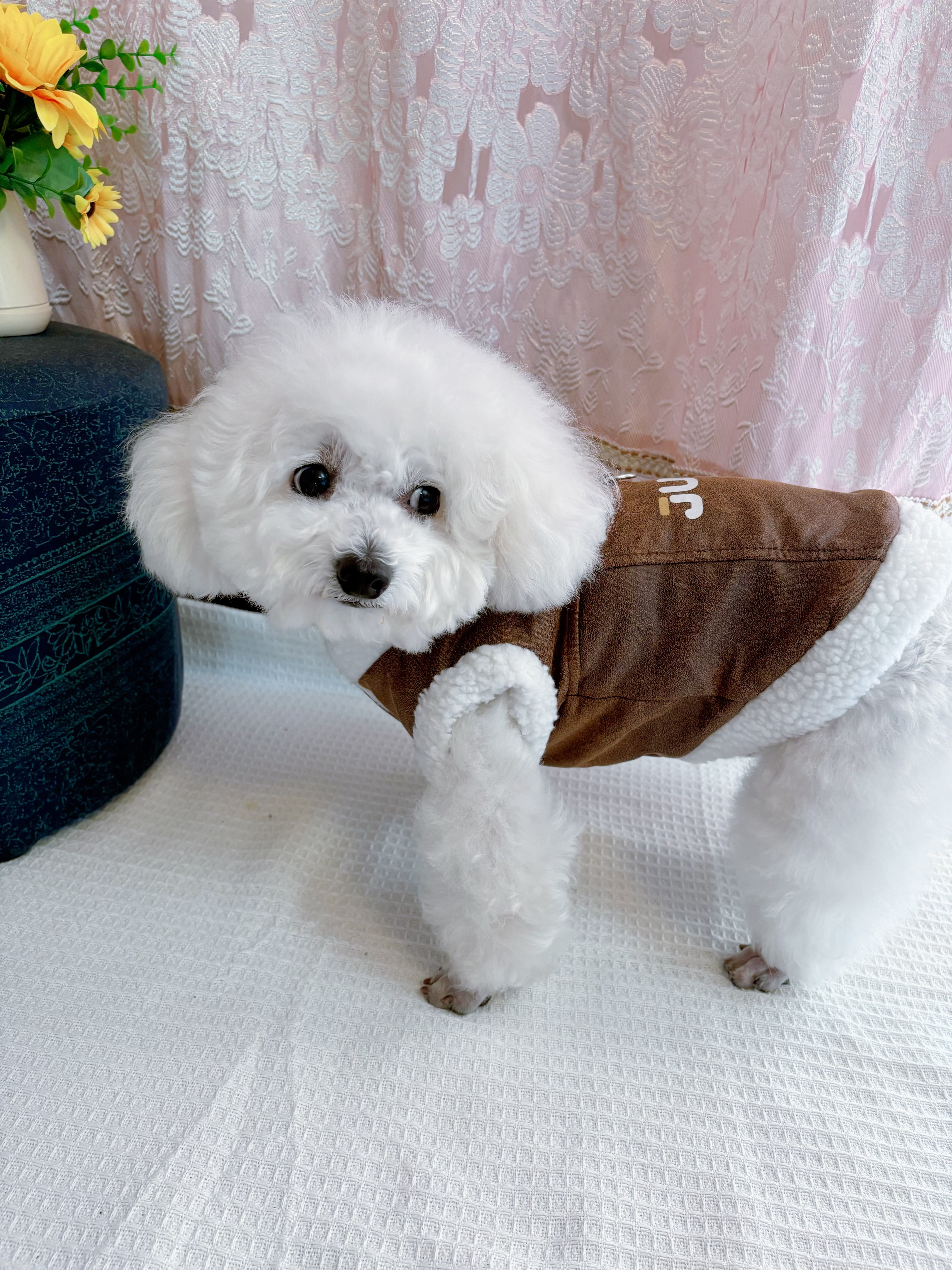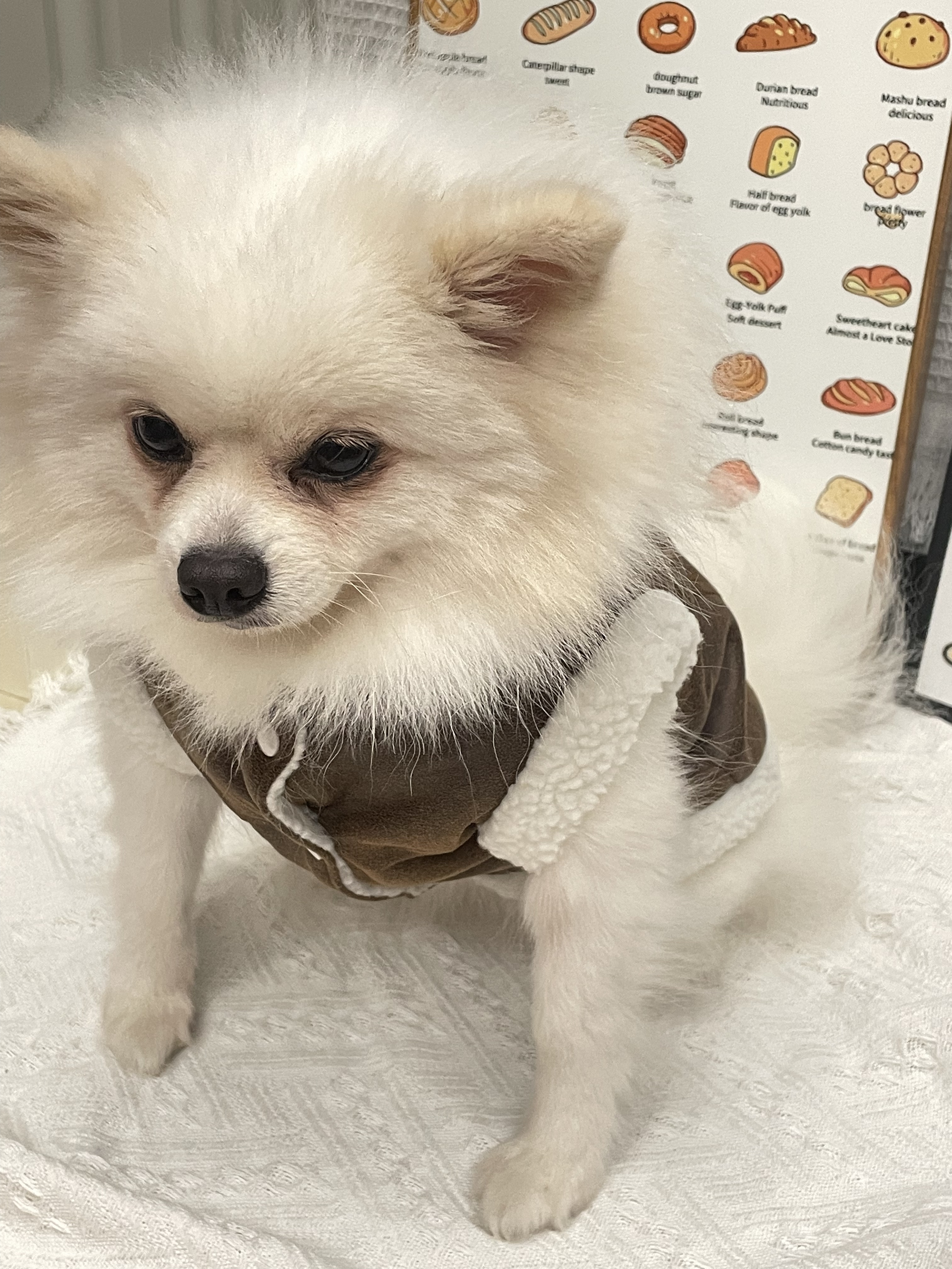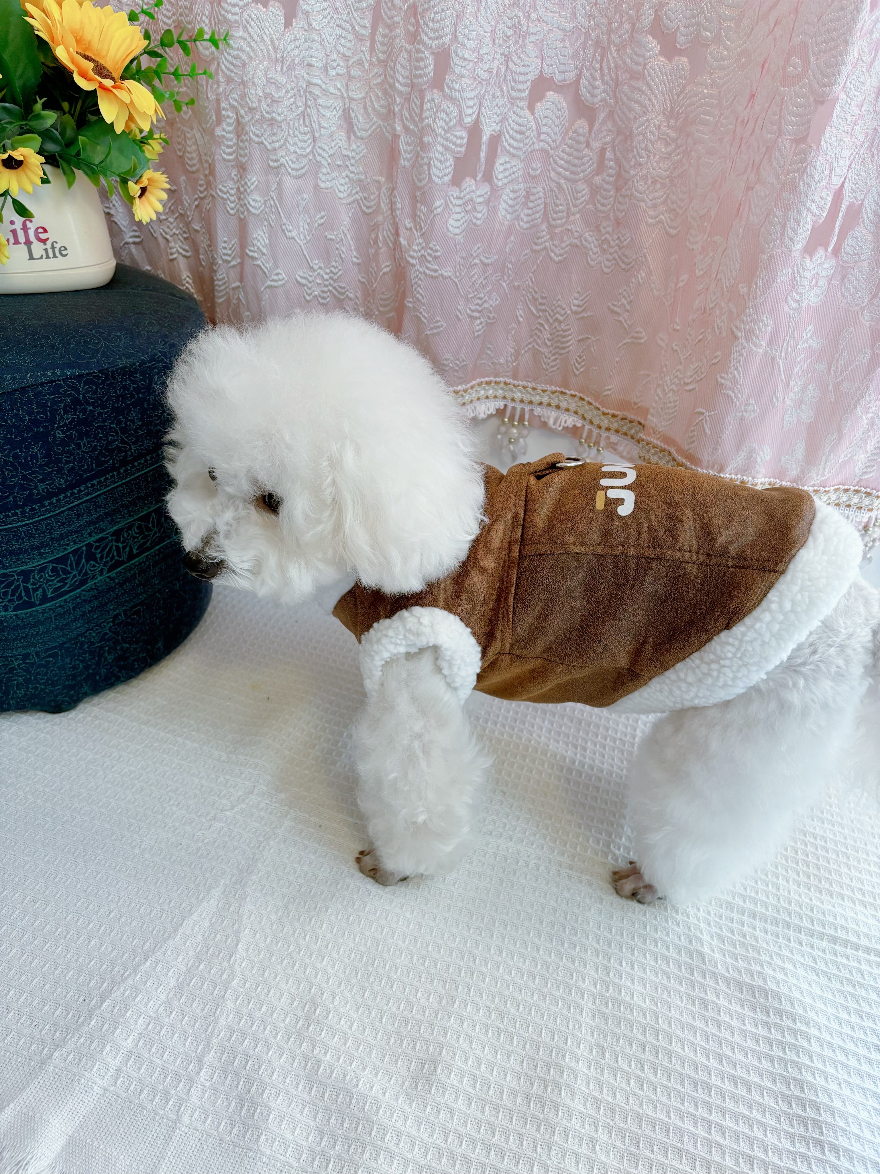 ブラウンは本当に秋冬にぴったりです!スエードはとてもクールで、犬が着るととてもかっこいいです。素材はフリースで厚く、寒さ対策に非常に優れています!冬に着ても全然寒くありません!