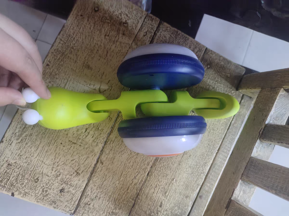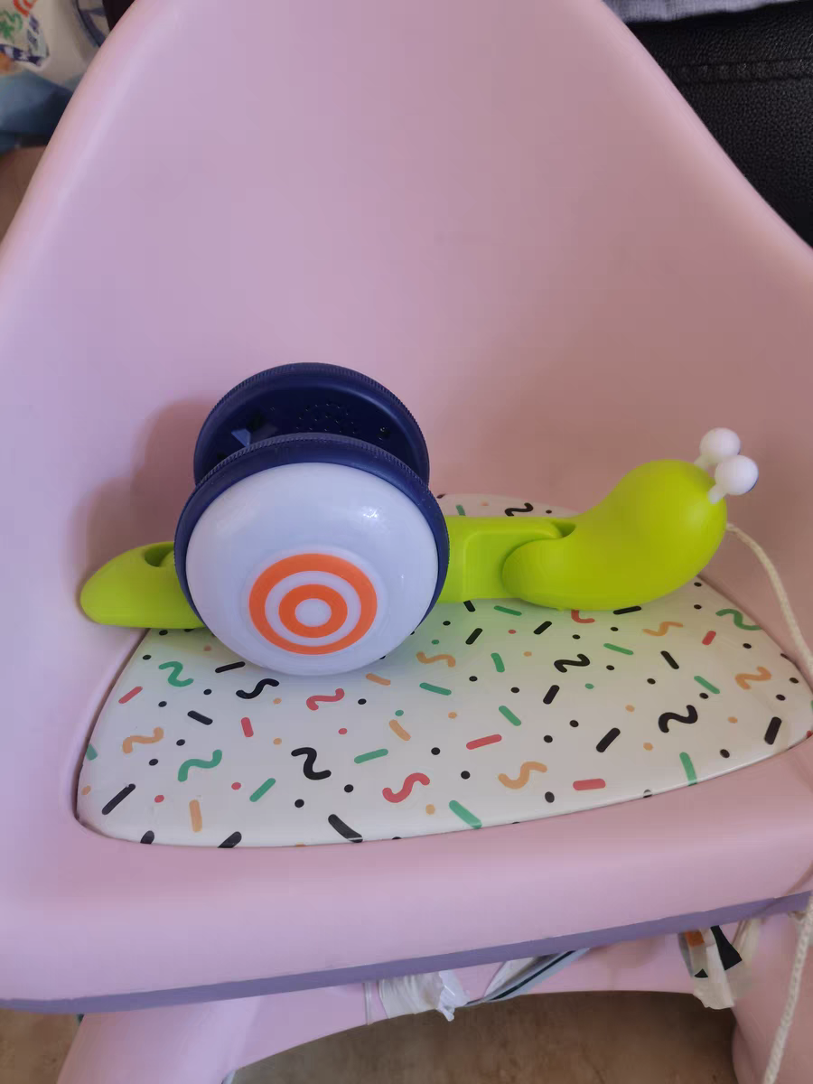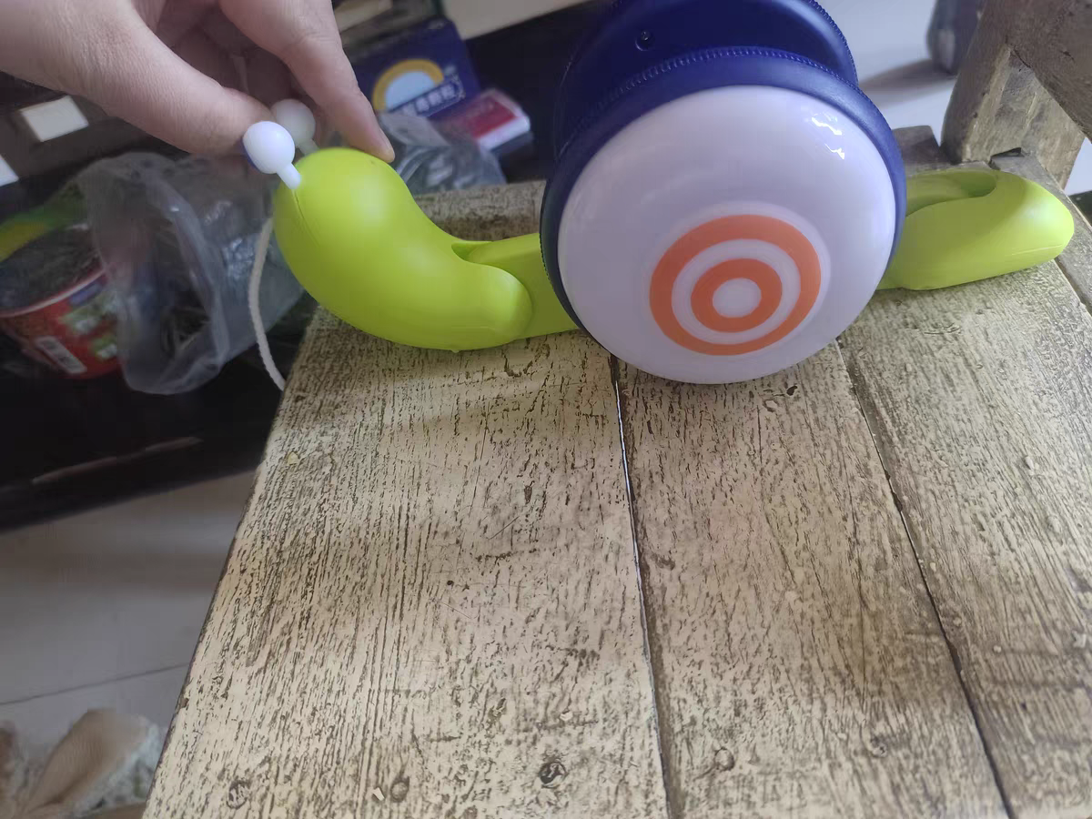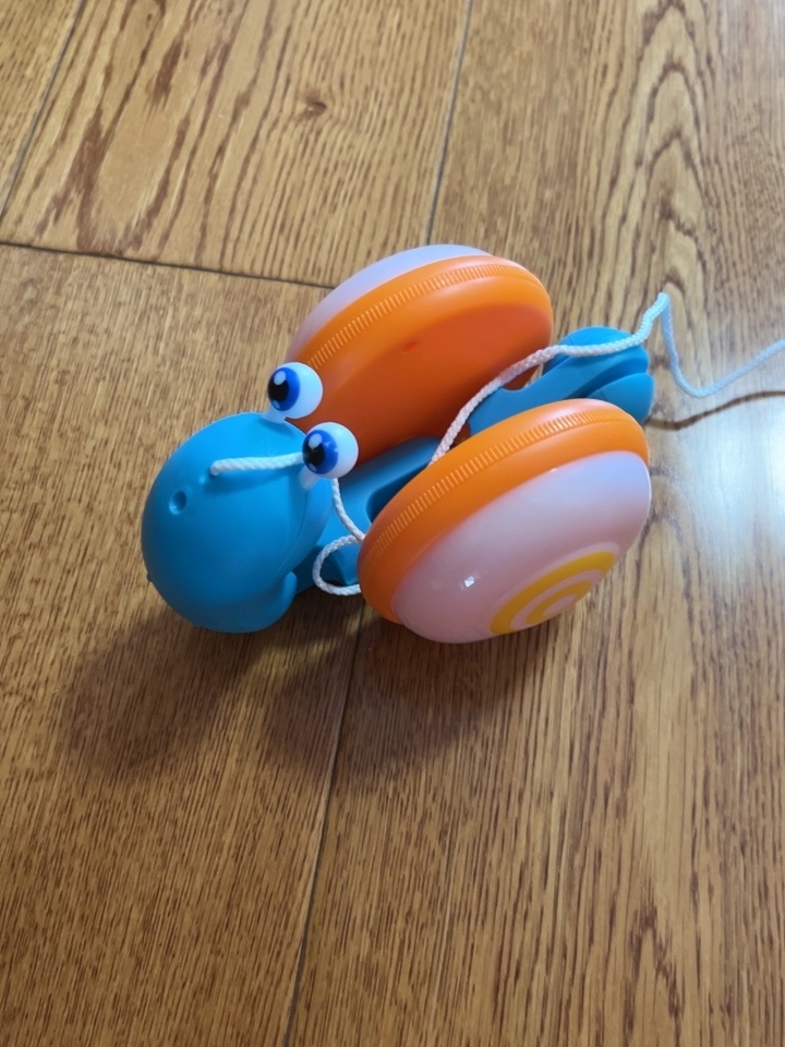 引っ張り紐を引くと、カタツムリが歩くので、歩行練習にもぴったりです。