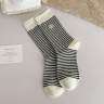 ソックス|ストライプ・春秋・コットン・ミディアム・クマ刺繍・ファッション・レディース・ベア