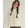 UniqueGirlベスト|春用・Vネック・ノースリーブ・ショート丈・小ポケット・ヴィンテージ風・春用・文芸風・ファッション・レディース