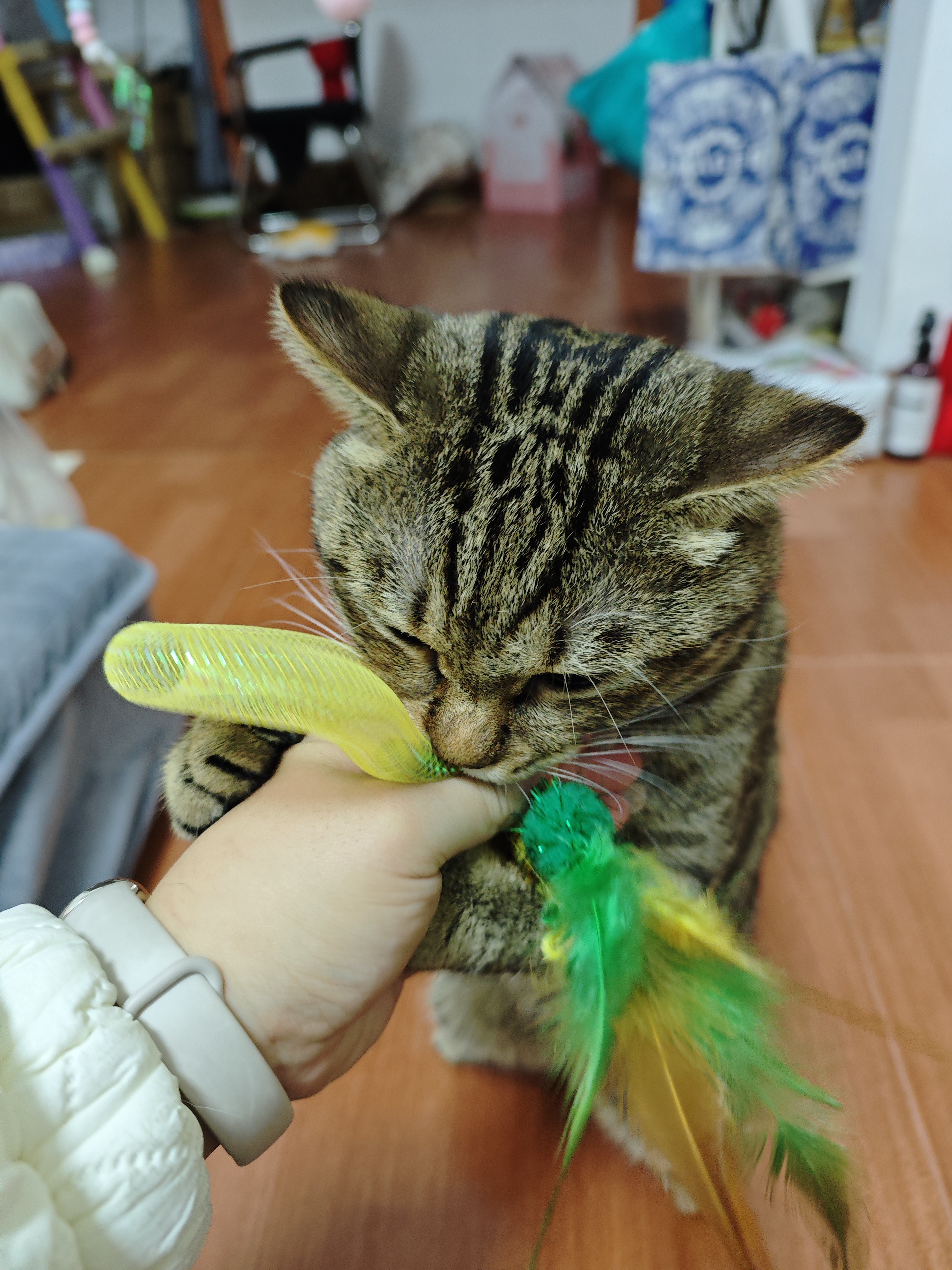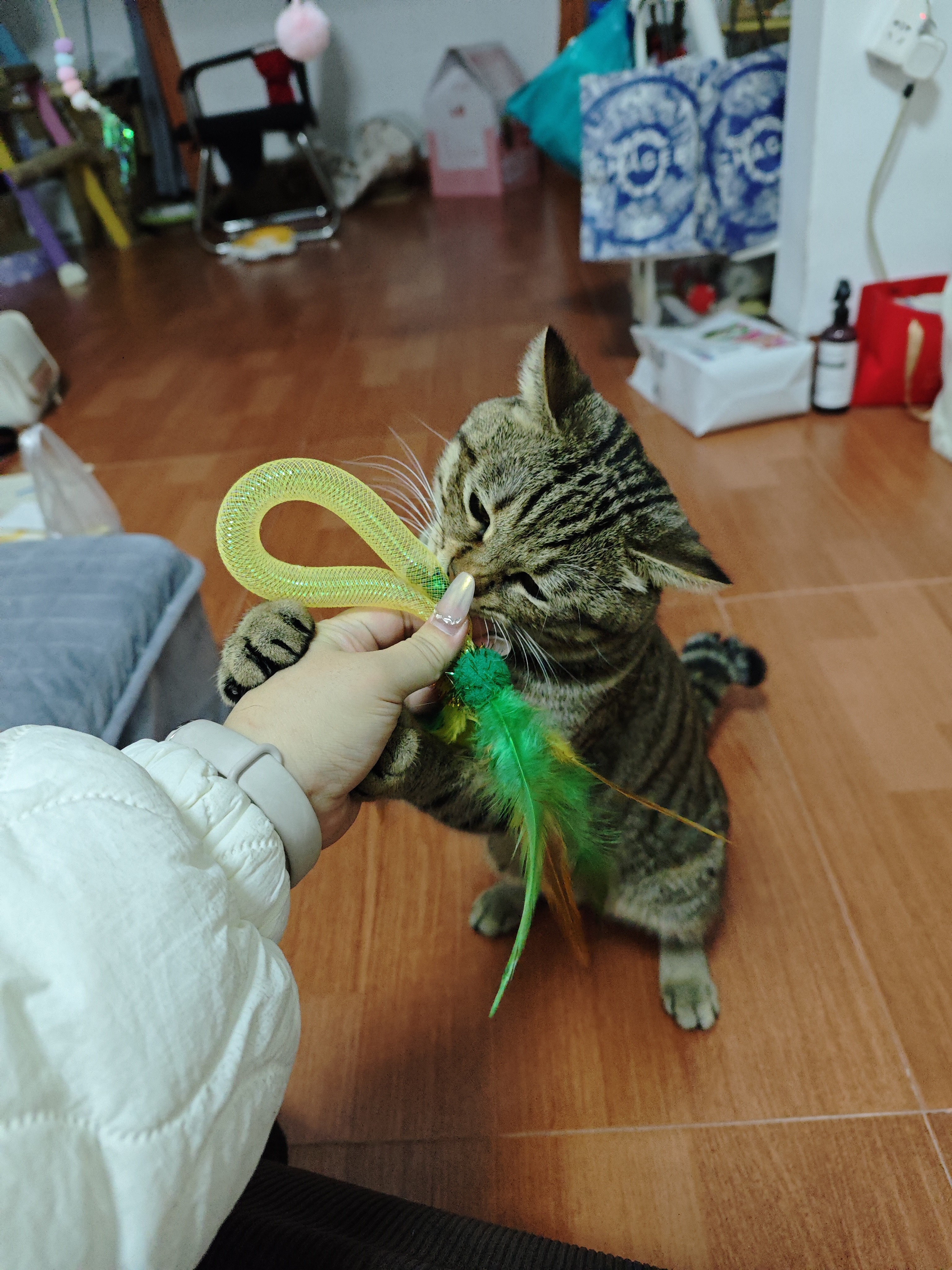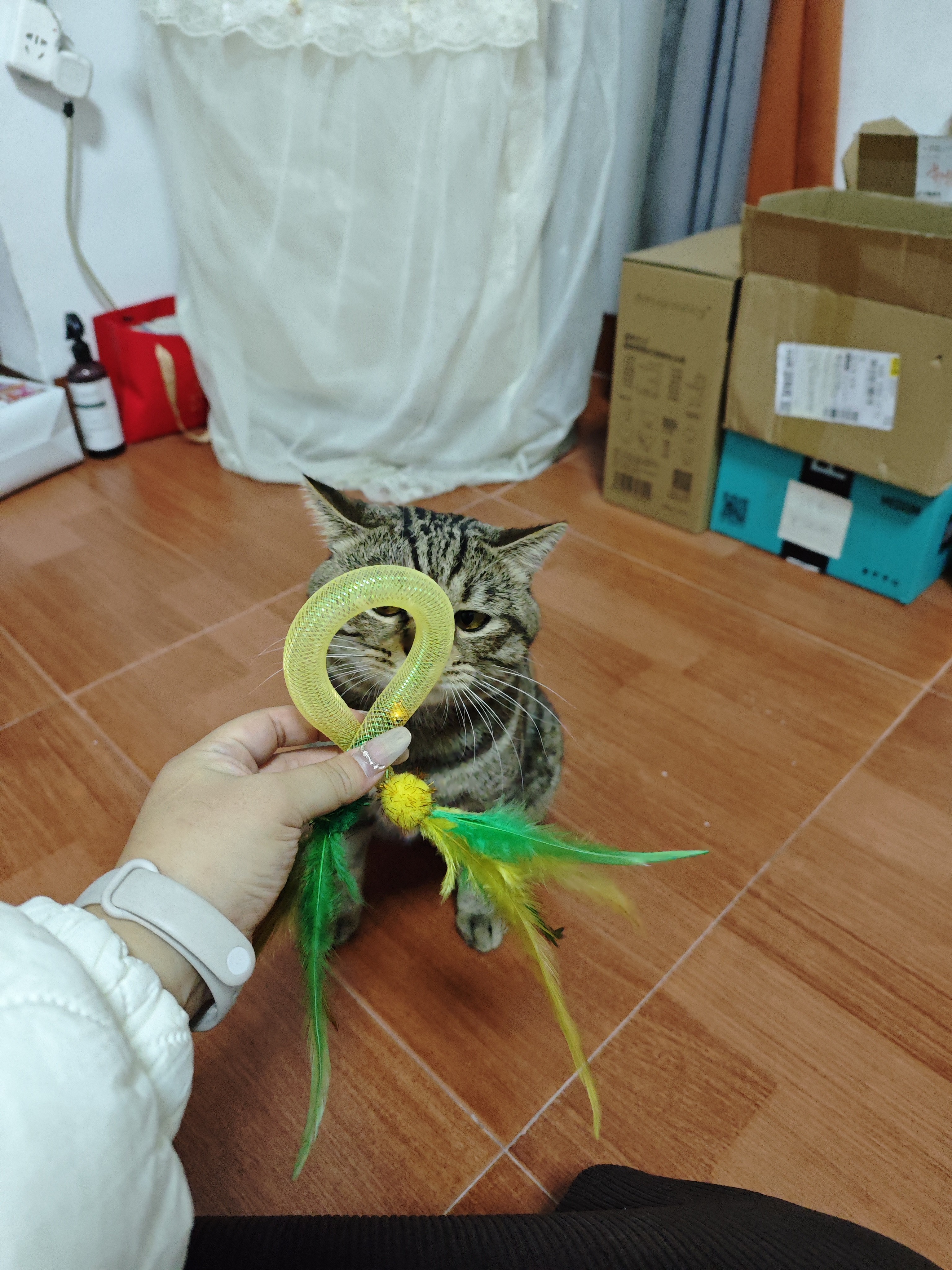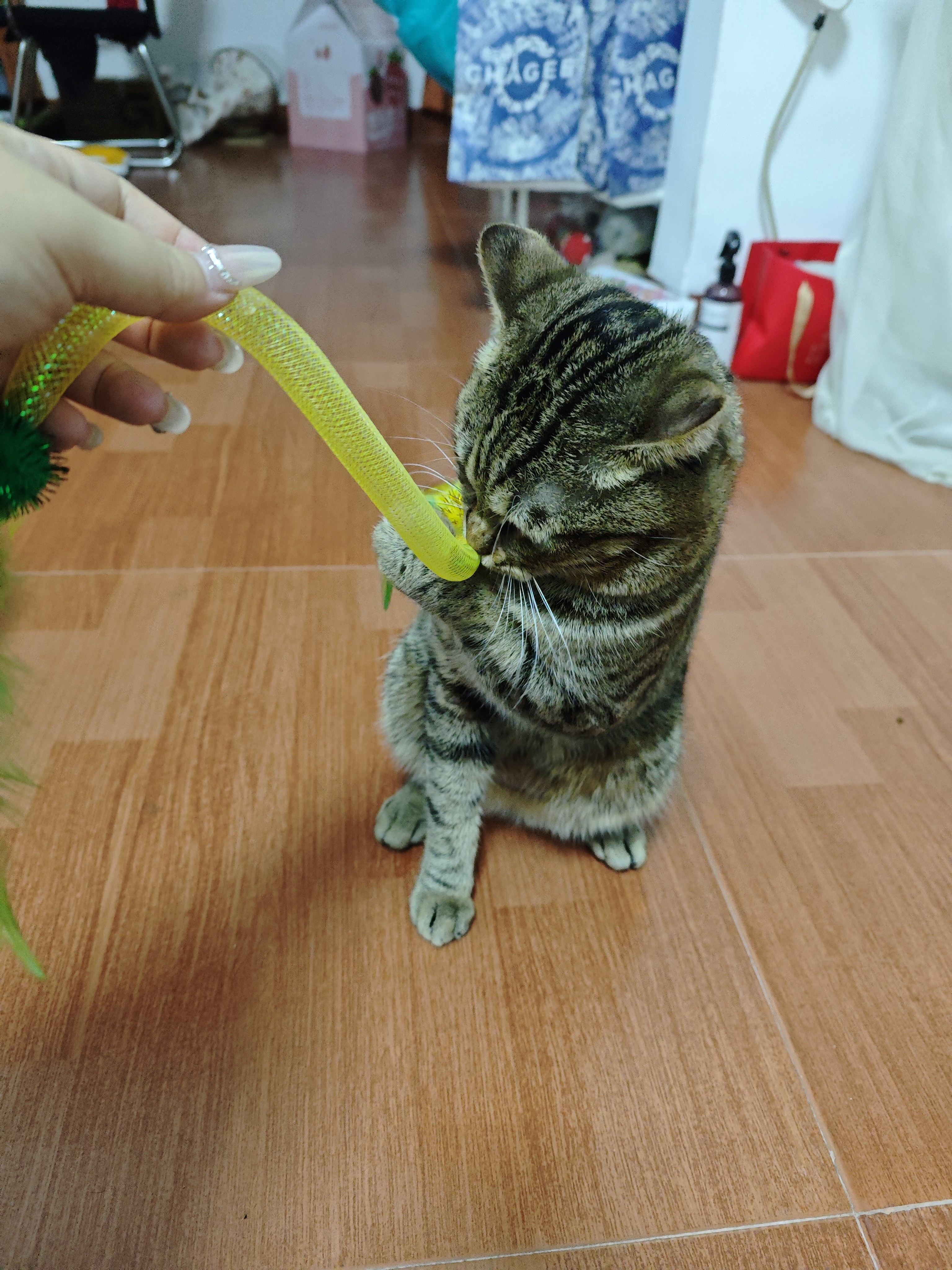 彼がこんなに好きだとは思わなかった!!!自分の猫がそこで30分以上遊んでいた。そして噛みつきもなく、耐久性もかなり良いのでオススメです!!!!