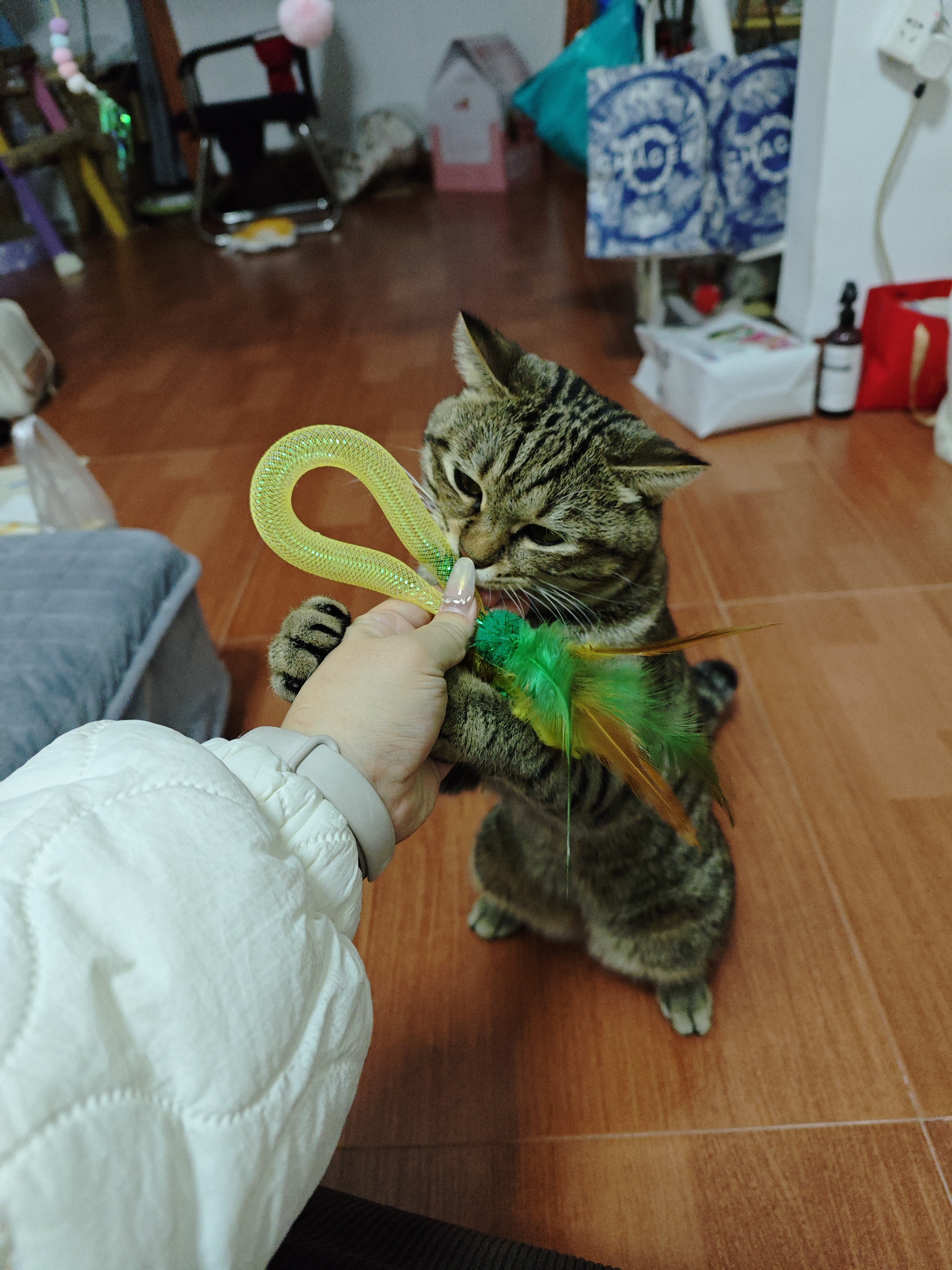 猫はこの面白い棒で遊ぶのが大好きで、ずっと追いかけて捕まっています。☺️色もとても鮮やかです👍ロープは伸ばすことができ、絵を伝える猫じゃらし棒は猫が好きではないので、これで遊ぶのはとても新鮮です。😄