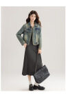 UniqueGirlデニムジャケット|春秋用・トップス・ショート丈・ウォッシュ加工・ファッション・レディース