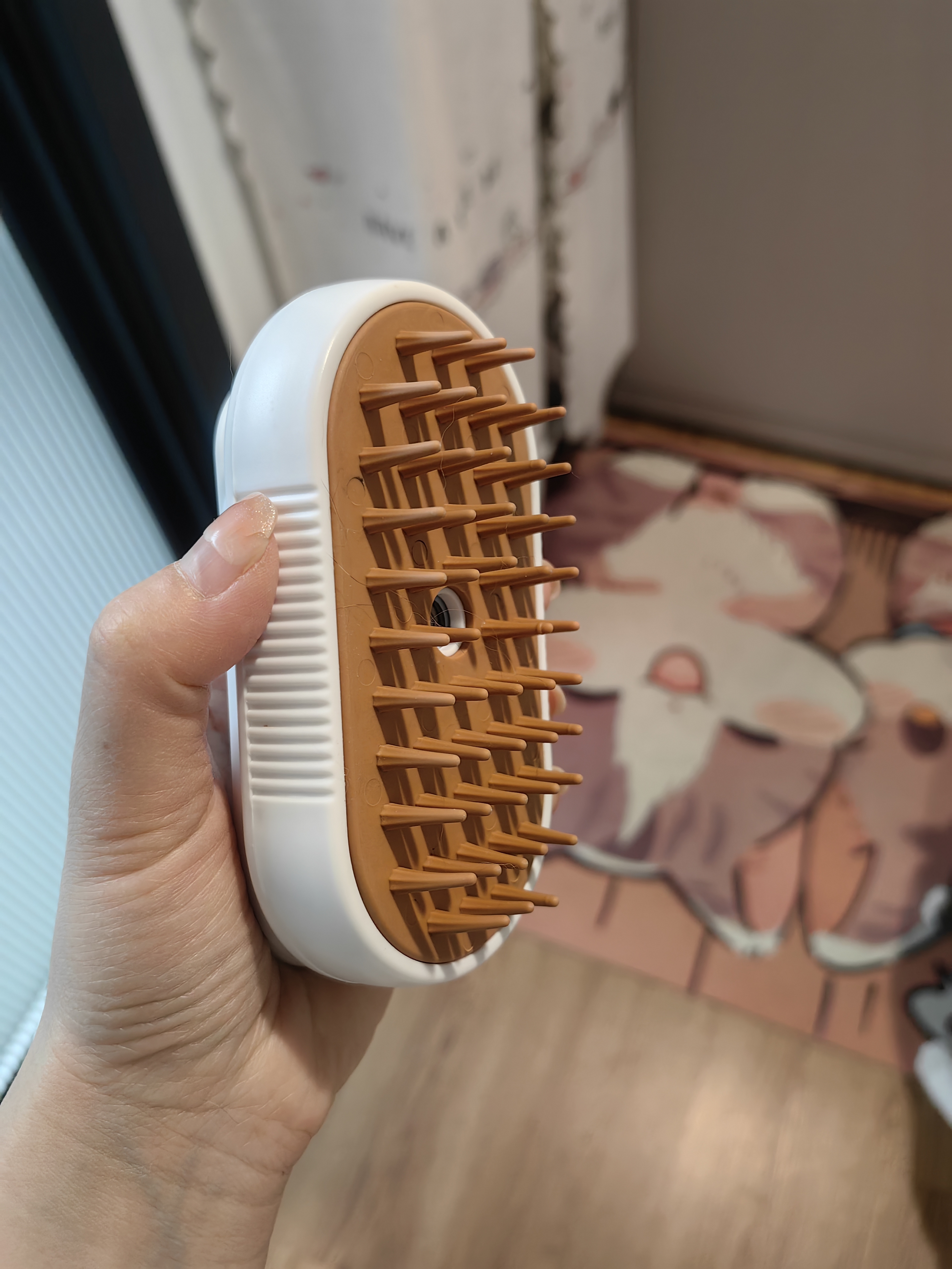 輸送中に少し損傷がありましたが、店舗に連絡したところ、すぐに返品または交換してくれました!スプレーはとても細かくて、歯の櫛は以前購入した短い丸いタイプよりも使いやすいです。櫛の毛は取り外しやすく、全く引っかかりません。