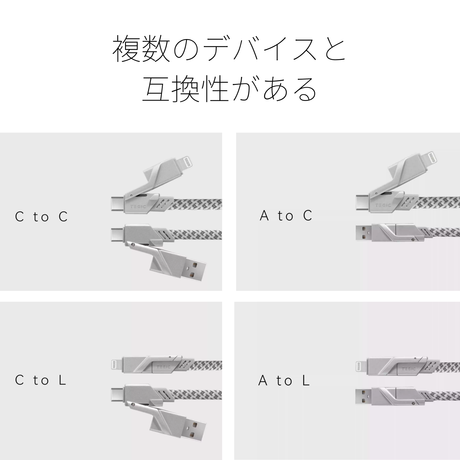 TEGIC 急速充電ケーブル|4in1・iPhone16/15対応・Type-C & Lightning・多機能・100W PD対応・パワフル・便利