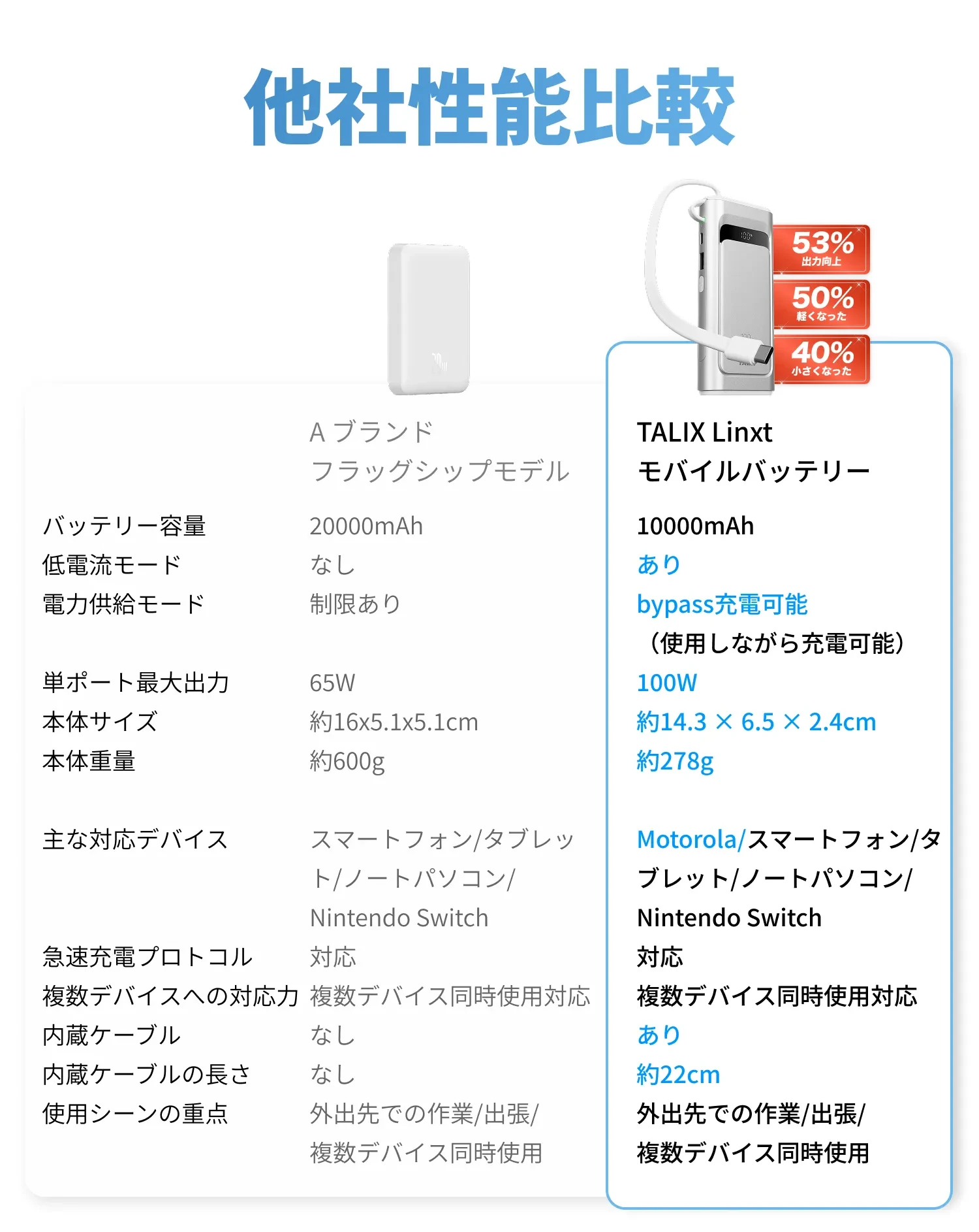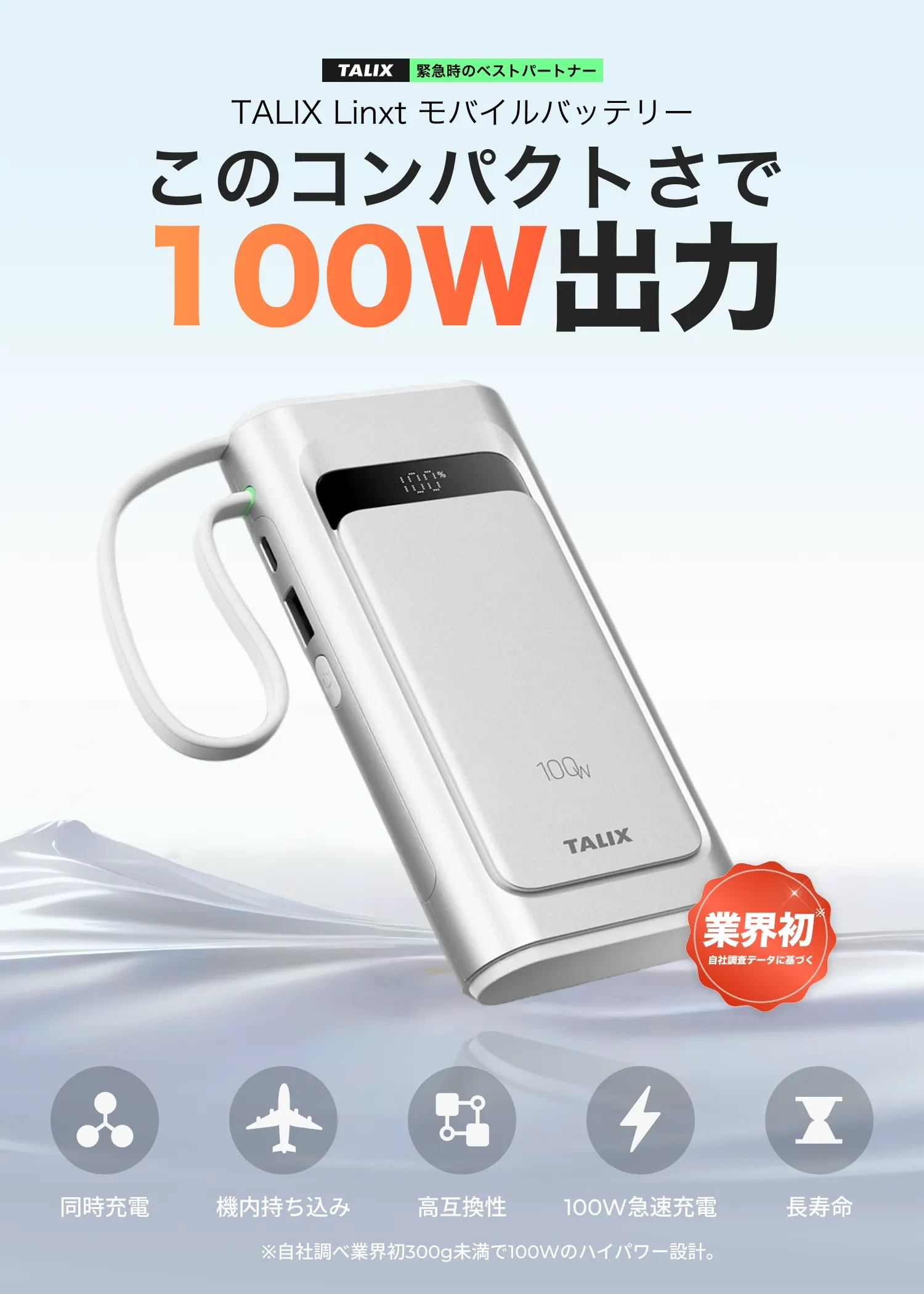 TALIXTALIX Linxt 100W モバイルバッテリー 10000mah・大容量・ノートPC対応・急速充電・Type-C・PD100w・3台同時充電(USB-A×1 USB-C×2)・低電流モード・バッテリー残量表示・コンパクト・PSE技術基準適